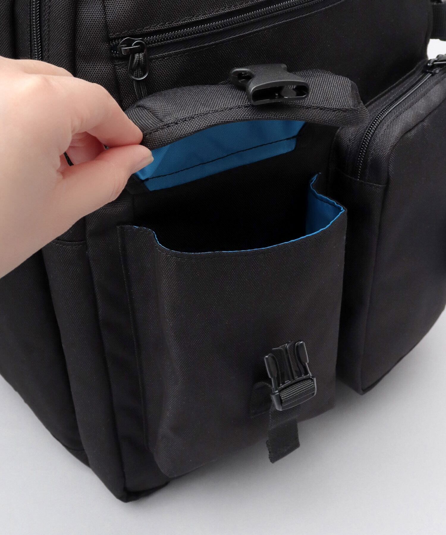 バッグ両サイドには、ボトル類や折り畳み傘の収納に便利なオープンポケットを配置。