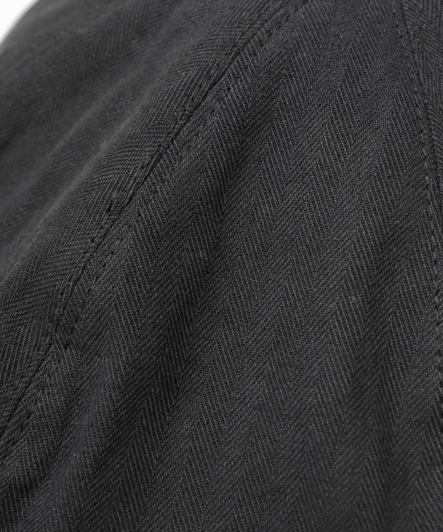 素材は、綿100%のヘリンボーン素材を使用。洗いをかけたフェード感のある表情が、クラシックさの中に程よい抜け感をプラスします。