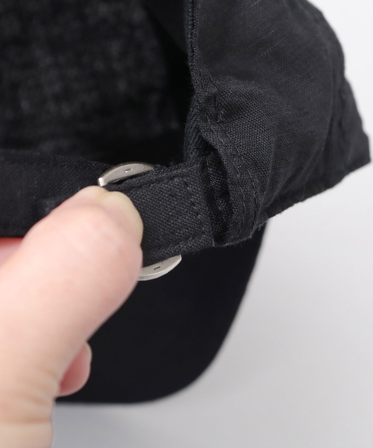 麻を50%以上配合した綿麻素材ならではの、ナチュラルでドライな風合いが魅力。軽量で通気性に優れており、蒸れにくく快適な被り心地なので、春夏シーズンに最適です。シンプルなベースボールキャップ型で、程よい被りの深さなので、誰でもバランスよく着用できます。リネン特有の素材感が楽しめる大人の雰囲気漂うキャップです。ユニセックス仕様で、ギフトアイテムとしてもおすすめです。