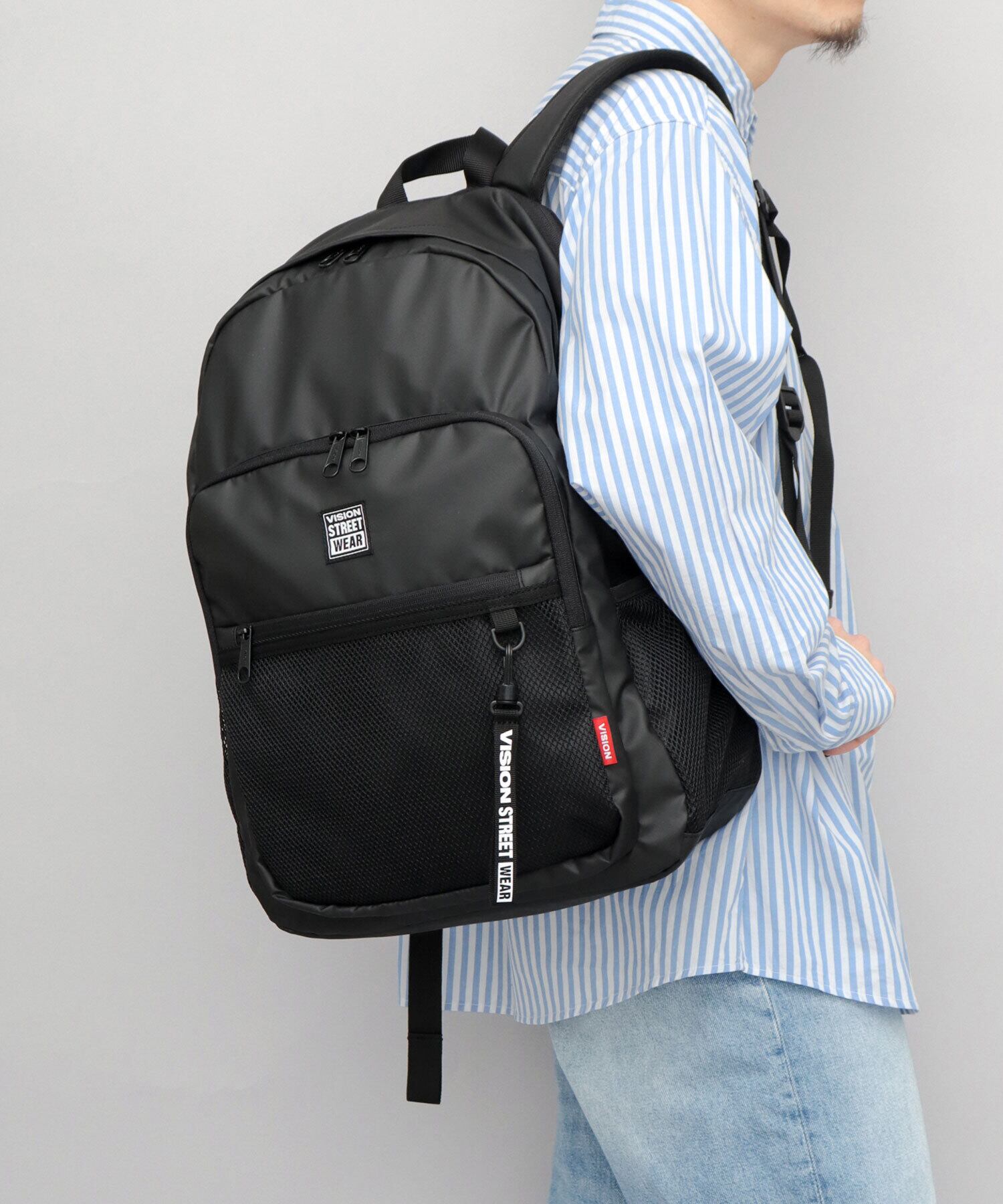 HBD-076 VISION STREET WEAR ヴィジョンストリートウェア リュック メンズ レディース バックパック 大容量 拡張機能 B4対応 通勤 通学 PC収納 多収納 多ポケット 600Dポリエステル 学生 ストリート カジュアル チェストベルト ストラップ付 母の日 父の日