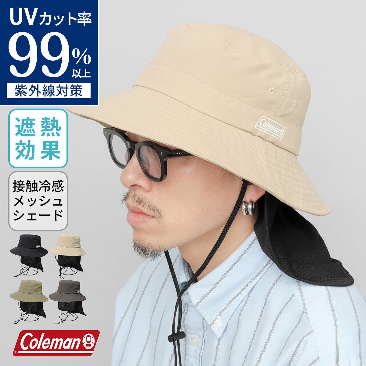 HYK-125 Coleman コールマン アドベンチャーハット サンシェード付き 帽子 メンズ レディース UVカット99% 遮光 遮熱 撥水 ハット アウトドア キャンプ フェス 釣り 登山 日除け 首元カバー メッシュ 通気性 あご紐付き サイズ調整可能 折りたたみ 春夏 母の日 父の日