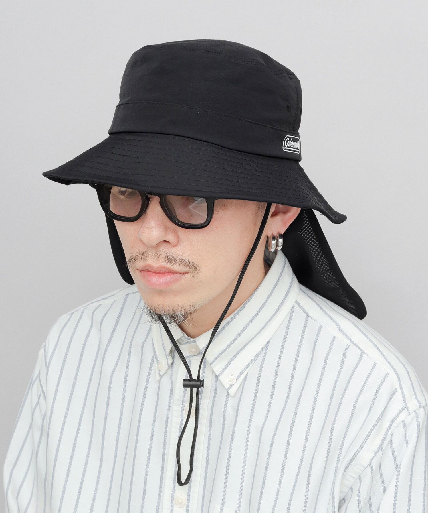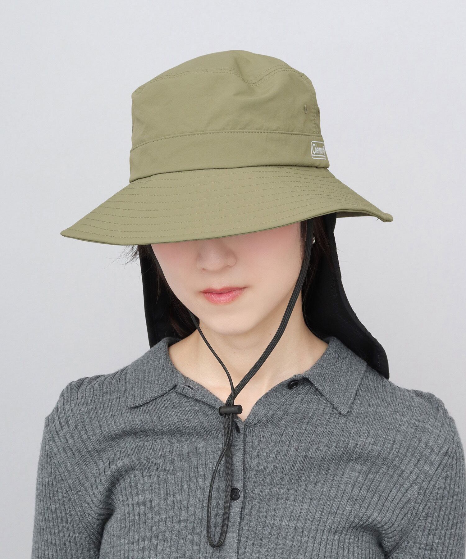 ダウンブリムシルエットのハットにサンシェードを組み合わせた、首元まで覆えるアドベンチャーハット。Colemanのブランドロゴがさりげないアクセントに。