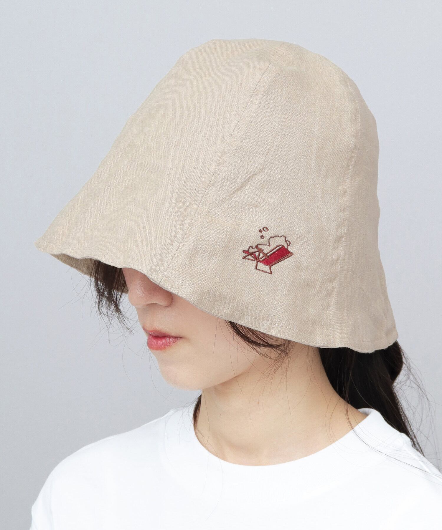 サウナ室で被ることで、熱い蒸気から頭部を守り、のぼせや髪へのダメージ軽減に役立つサウナハット。チューリップハットのような丸みのあるシルエットで、サウナ時間もおしゃれに楽しめるデザインです。サイドの刺繍がさりげないアクセントになっています。