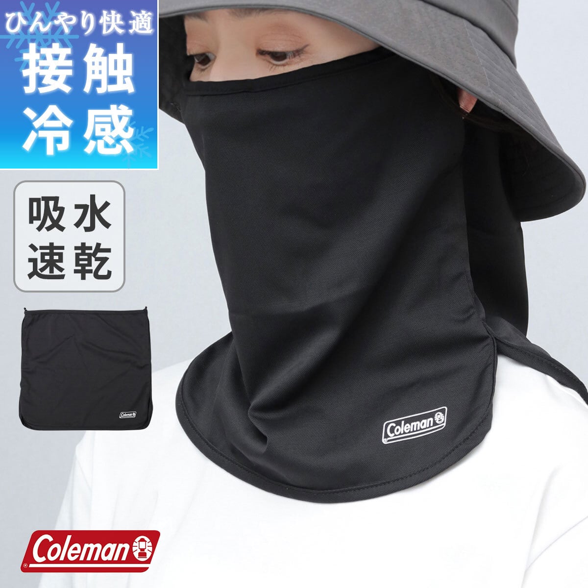 HYK-130 Coleman コールマン フェイスカバー ネックガード メンズ レディース 接触冷感 吸水速乾 メッシュ 通気性 UV対策 日除け 紫外線対策 顔カバー 首元カバー 帽子用 帽子につける 取り付け 軽量 洗える アウトドア スポーツ 春夏