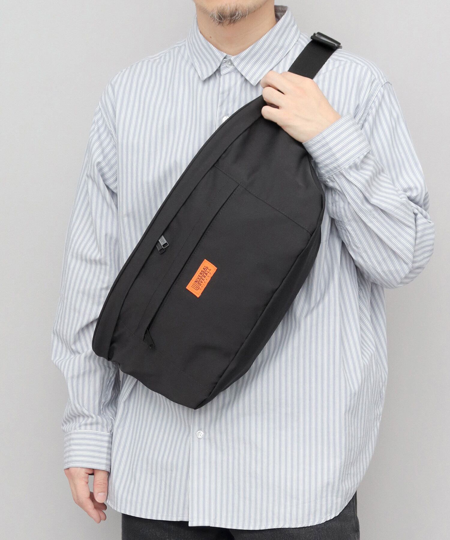 老舗ワークウェアブランド“UNIVERSAL OVERALL(ユニバーサルオーバーオール)”のビッグヒップバッグ。ボディバッグとしてはやや大きめのサイズ設計で、デイリーに必要な荷物をまとめて収納できる容量を確保。B5サイズが収まる収納力に加え、バッグ内外にポケットを配置した実用的な設計も魅力。微光沢のポリエステル素材を使用し、上品で落ち着いた雰囲気に仕上げました。シンプルで合わせやすいデザインで、普段使いはもちろん、旅行やアウトドア、レジャーなど幅広いシーンで活躍するアイテムです。