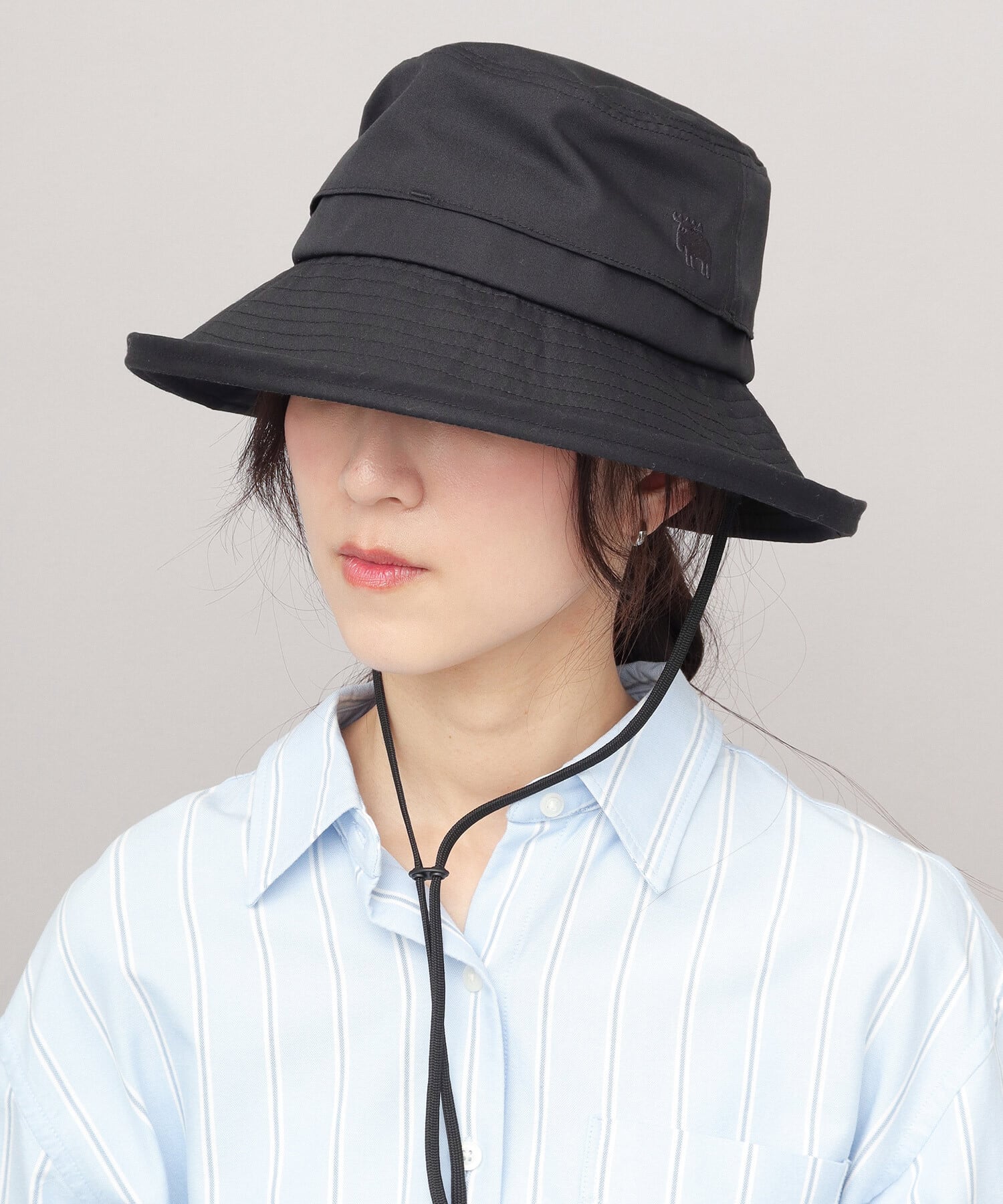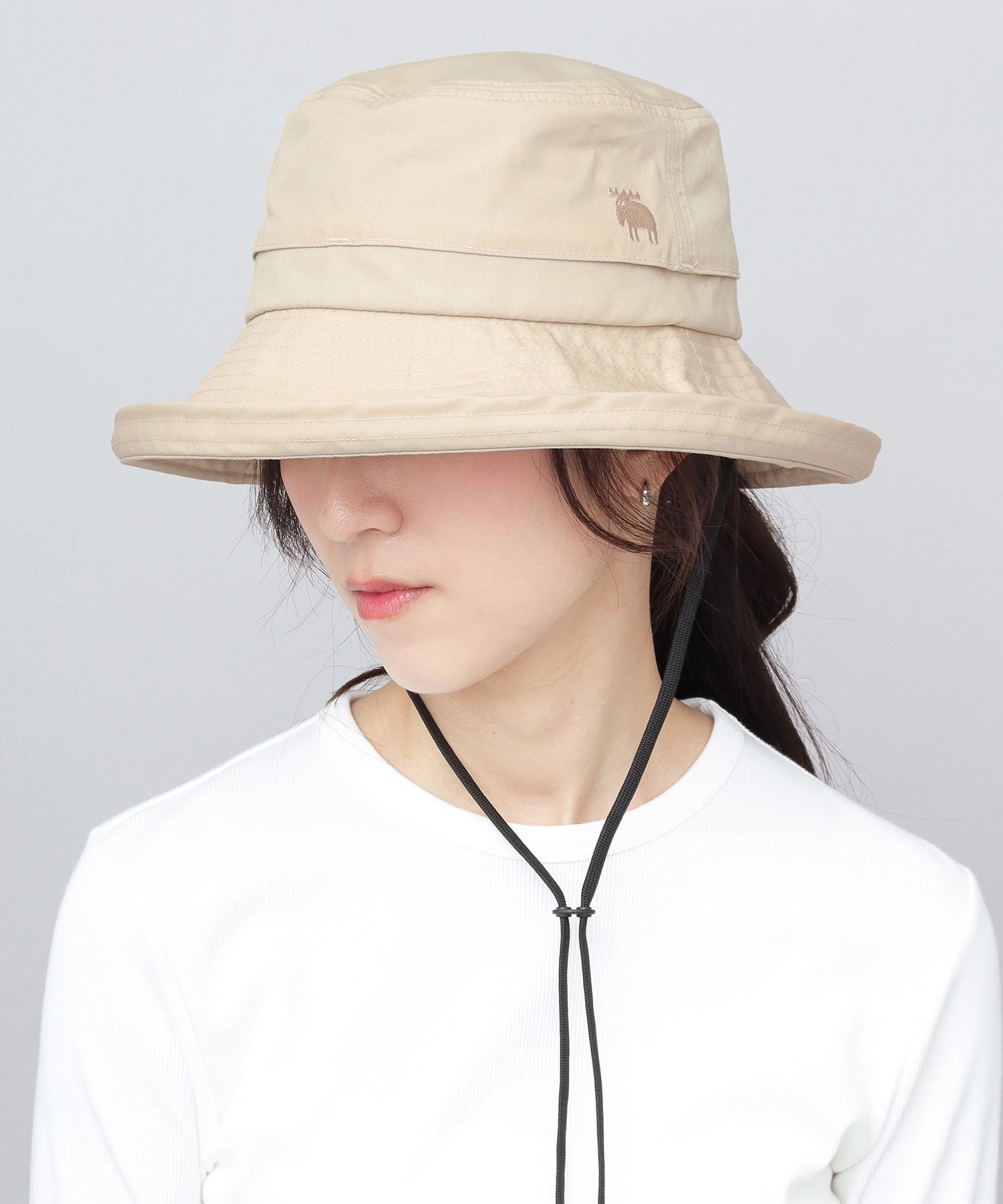 風で飛ばされにくい顎紐付き。ストッパー付きで長さの調節が可能です。ドローコードは長めの設計で、帽子を首から掛けることも可能。取り外しもできるので、顎紐なしのシンプルなスタイルでも使用できます。