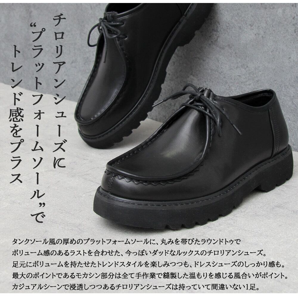 分厚いプラットフォームソールに、丸みのあるラウンドトゥでボリューム感あるラストを合わせ、定番のチロリアンシューズをトレンド感のあるダッドな雰囲気に。
