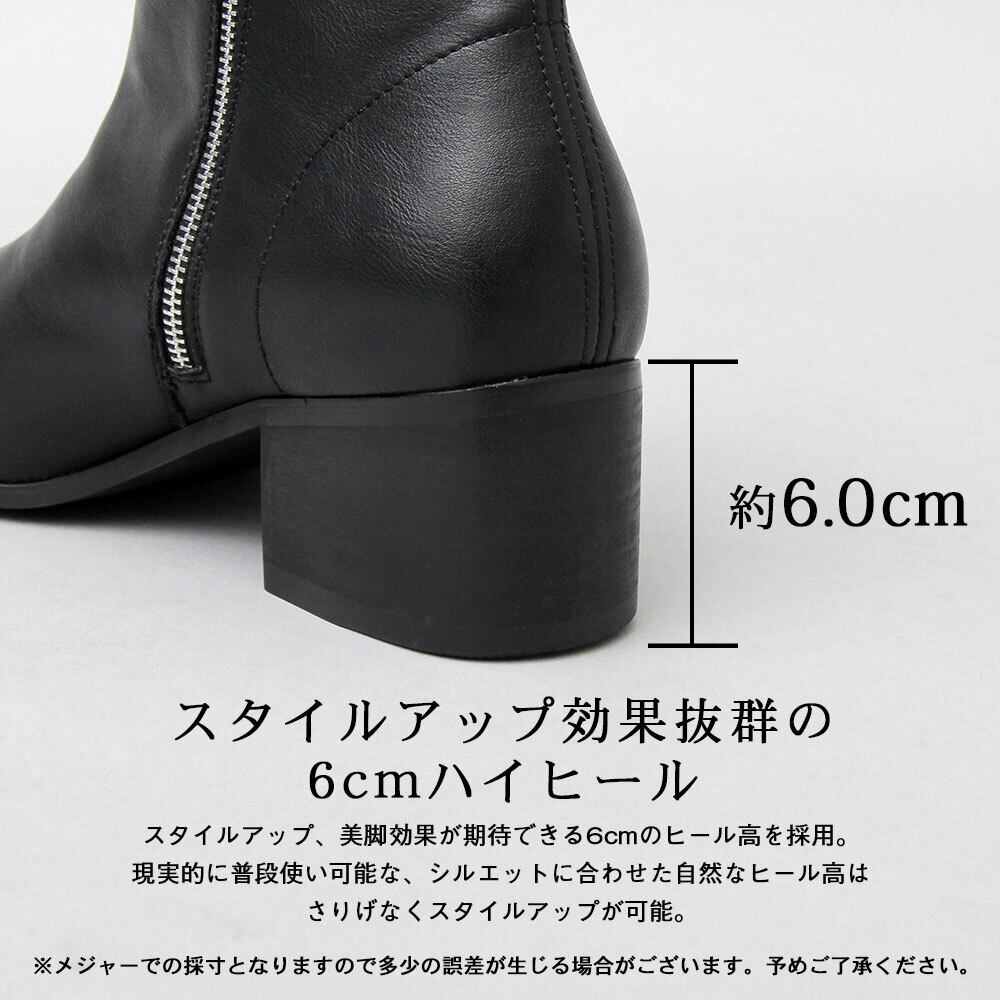 スタイルアップ、美脚効果が期待できる6cmのヒール高を採用。現実的に普段使い可能な、シルエットに合わせた自然なヒール高は、さりげなくスタイルアップが可能。