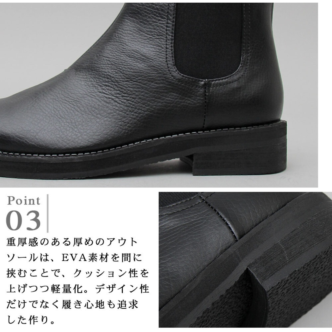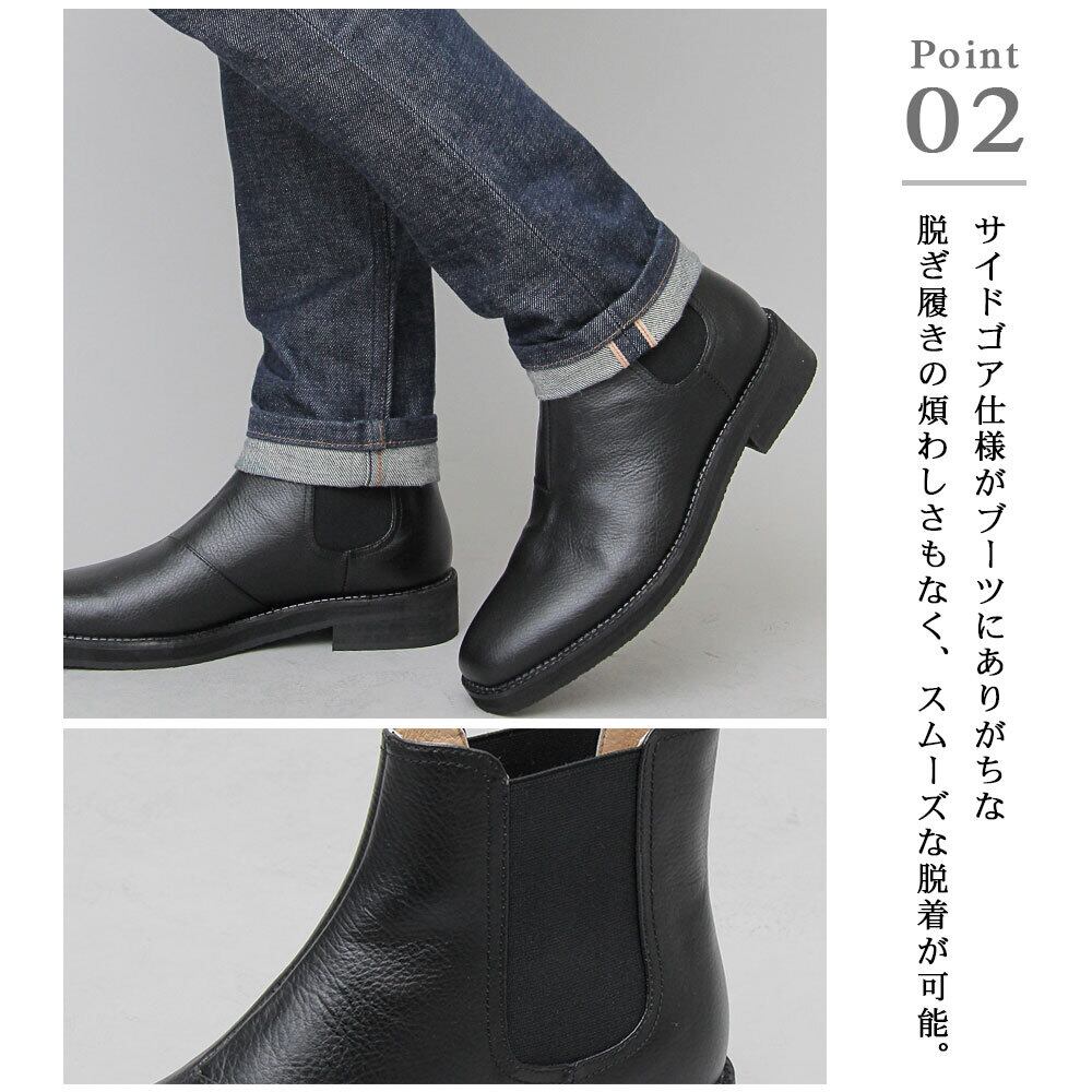 サイドゴア仕様がブーツにありがちな脱ぎ履きの煩わしさもなく、スムーズな脱着が可能。