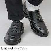 厚みがあり、しなやかな風合いの表情の異なる2種類のスプリットレザーを使用。適度なシボ、艶感が幅広いカジュアルに合わせやすいスムース(ブラック)と、かっちりとした風合いでキレイ目やカジュアルの引き締めにぴったりなアドヴァン(ブラック系その他)。