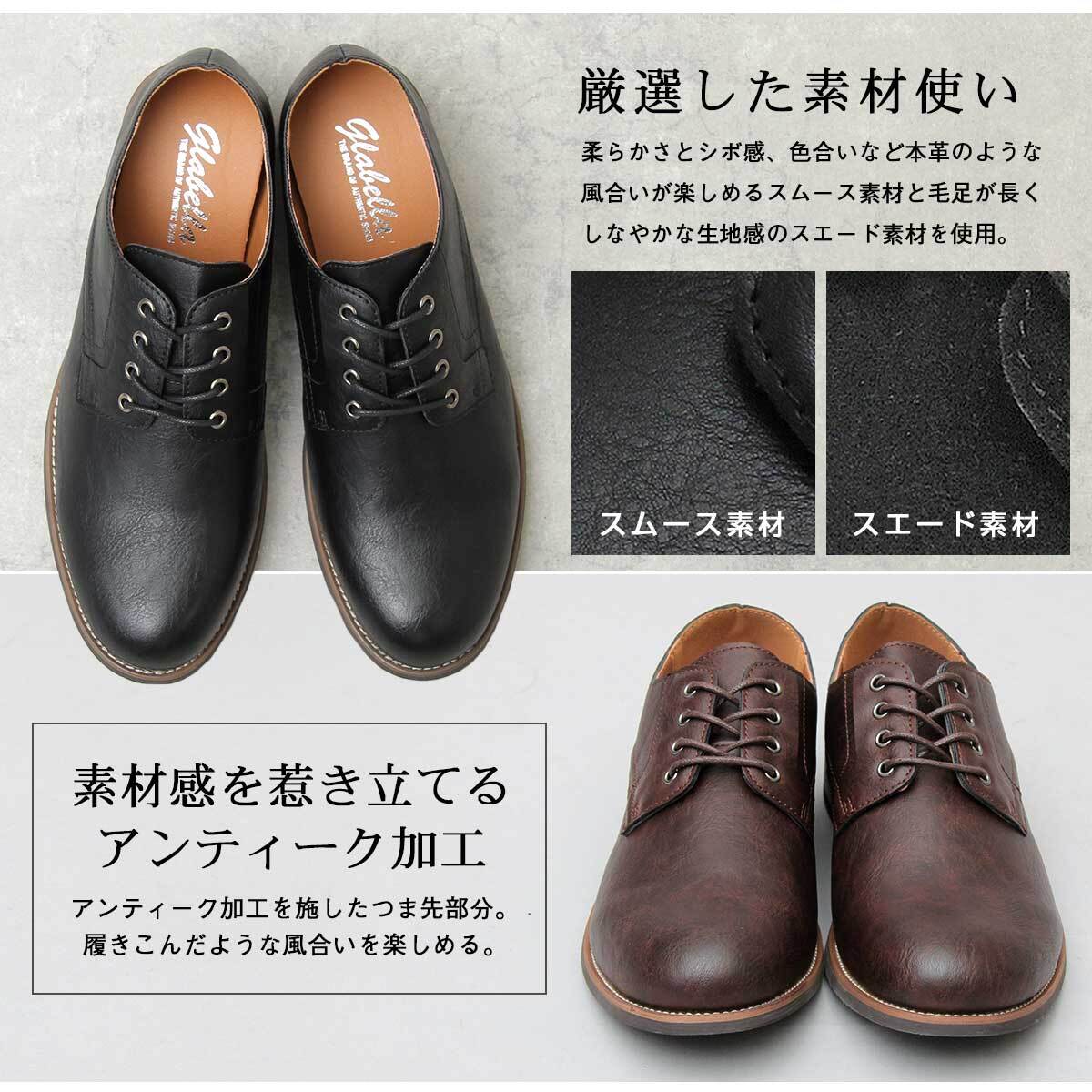 柔らかさとシボ感、色合いなど履き込んだ本革のような風合いが楽しめるスムース素材と、ナチュラルな雰囲気で立体感のある毛羽立ちのスエード素材を使用。