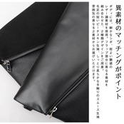 シボ感のあるレザー調素材と異素材との組み合わせが、高級感のある仕上りで、素材選びの拘りを感じます。カジュアルな場から、結婚式やパーティーなど、フォーマルなドレスシーンでも使いやすいです◎特に結婚式には、ご祝儀袋、招待状、お財布にハンカチ・ティッシュ、スマホ、モバイルバッテリーなど、最低限の荷物だけでも意外とジャケットやスーツのポケットだけでは収まらないので、荷物をひとまとめにできる少し大きめが便利です。モードな雰囲気で、韓国系のファッションとも相性が良さそうです。Tシャツにデニム・チノパンなどのシンプルなスタイリングのアクセントにも使えそう!