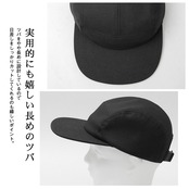 フラットなツバ、浅めの被り、5パネルデザインのこれぞジェットキャップとも言うべき王道シルエットのジェットキャップ。やや横幅を持たせたワイドで、厚みのあるツバと、しっかりとした素材感で、ミニマルなデザインながら存在感のある仕上がりに。まっすぐ水平に深めに被ったり、浅く斜め後ろに倒して被ったりと、被り方次第でがらりと印象が変えられるので、自分に合った被り方を楽しめます。長めのツバがしっかり日差しをカットしてくれるのもポイント!
