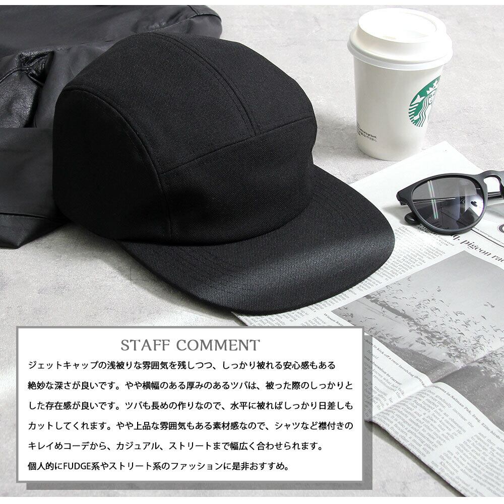 ジェットキャップの浅被りな雰囲気を残しつつ、しっかり被れる安心感もある絶妙な深さが良いです。やや横幅のある厚みのあるツバは、被った際のしっかりとした存在感が良いです。ツバも長めの作りなので、水平に被ればしっかり日差しもカットしてくれます。やや上品な雰囲気もある素材感なので、シャツなど襟付きのキレイめコーデから、カジュアル、ストリートまで幅広く合わせられます。個人的にFUDGE系やストリート系のファッションに是非おすすめ。
