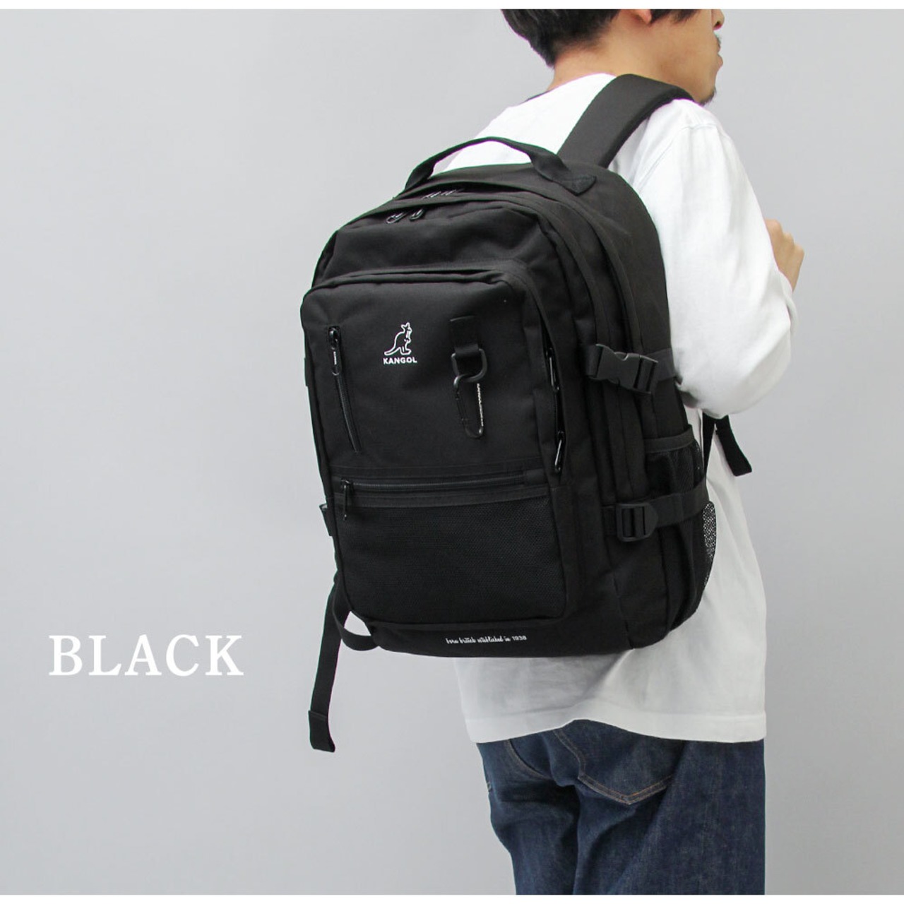 DYS-032 BK【 KANGOL / カンゴール 】 フロントポケット バックパック / リュック / 大容量 / カラビナ付き