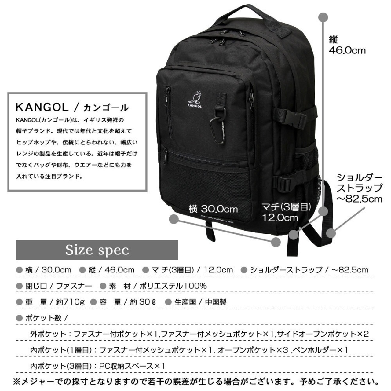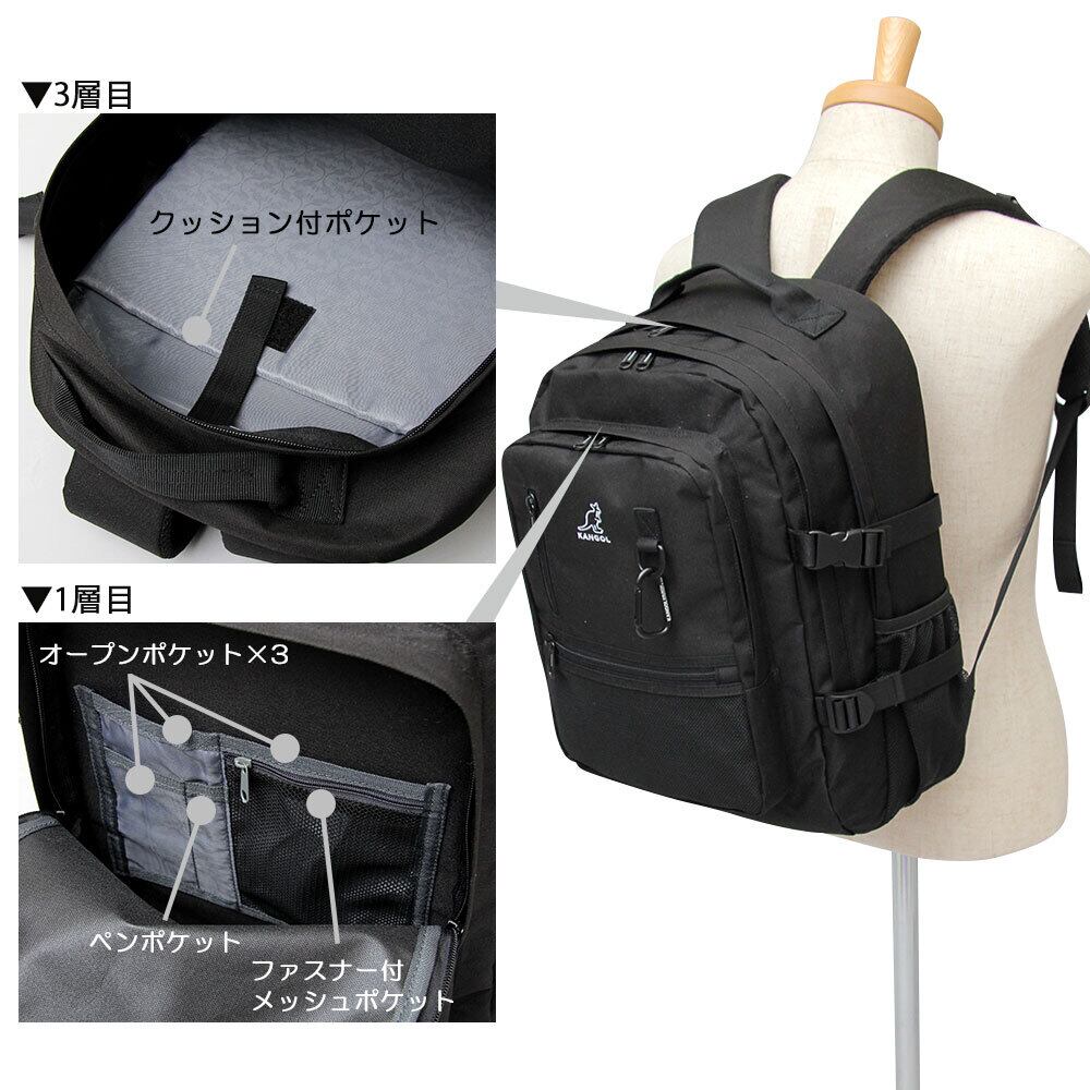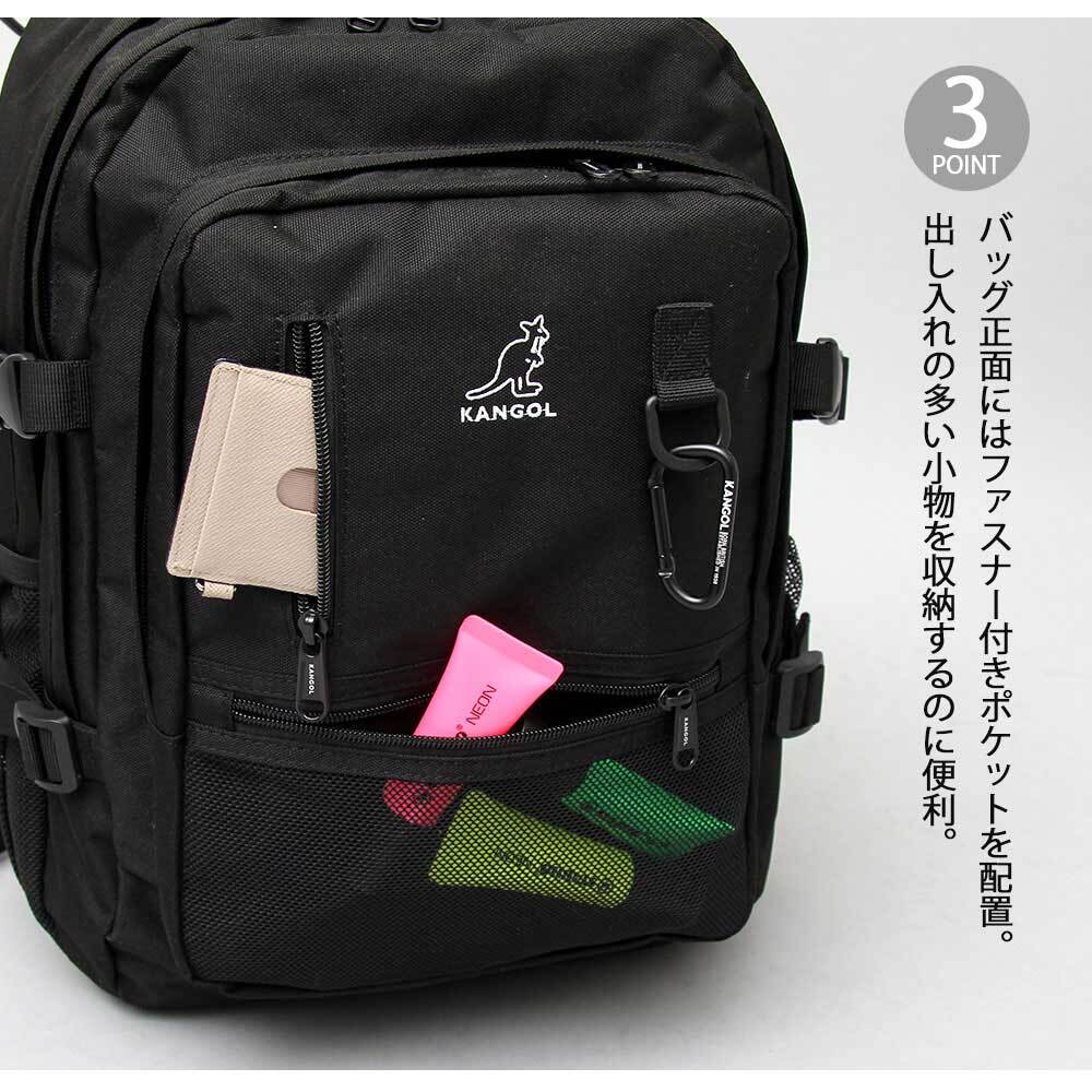 言わずと知れたイギリスの帽子ブランド“KANGOL(カンゴール)”のバックパック。シンプルで使いやすく、フロントのアイコン刺繍とカラビナがさりげないアクセントに。A3サイズもすっぽり収まる大容量サイズで、3ルームに分かれたメイン収納部にはタブレット端末やノートPCが収納できるクッションポケットも完備。外側にも小物収納に便利なポケットを複数配置。通勤・通学はもちろん、旅行、アウトドアなど様々なシーンで活躍すること間違いなし!