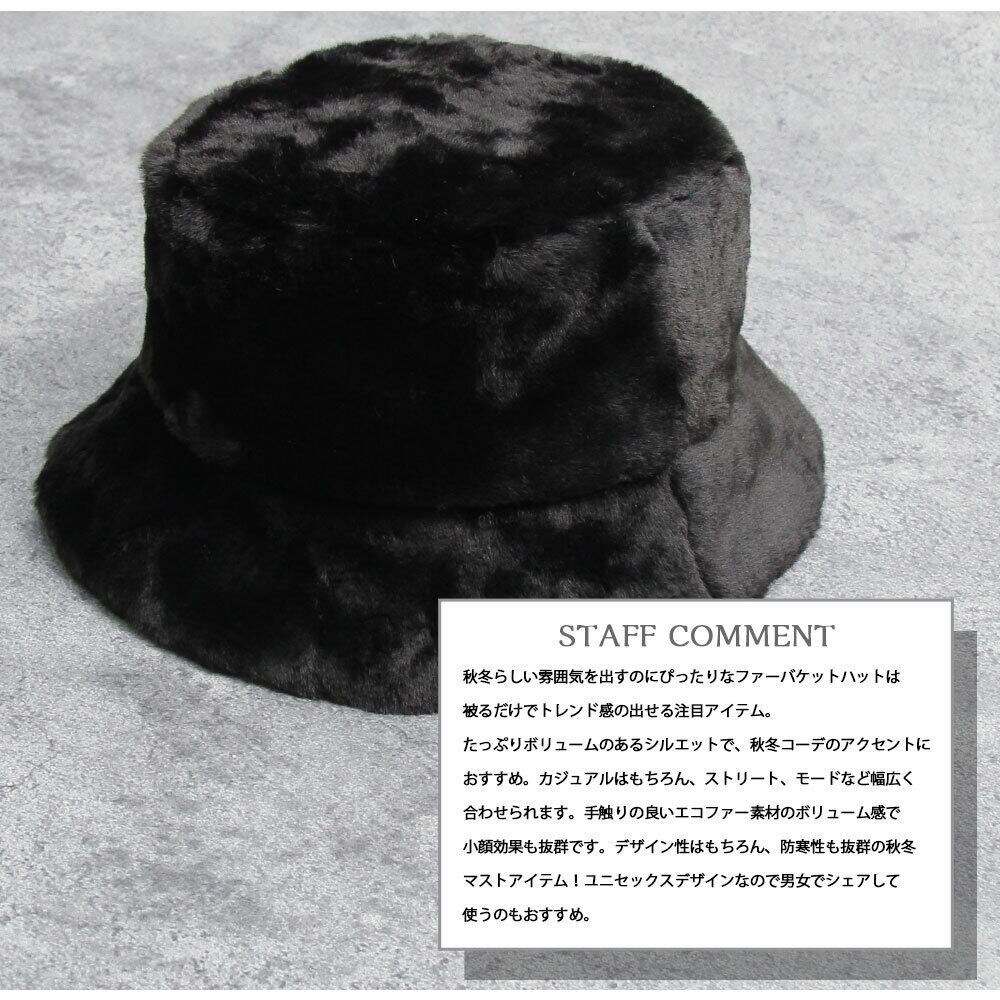 秋冬人気のファー素材をふんだんに使用したバケットハット。ベーシックなフォルムにたっぷりとボリュームを持たせた存在感あるシルエットが特徴。カジュアル全般に幅広く合わせられ、被るだけでボリュームのあるシルエットの存在感がコーデにアクセントをプラスしてくれます。手触りの良いエコファー素材が秋冬のシーズンムードをぐっと盛り上げてくれます。デザイン性はもちろん、防寒性もしっかりと完備!男女シェアして使えるユニセックスデザインです。