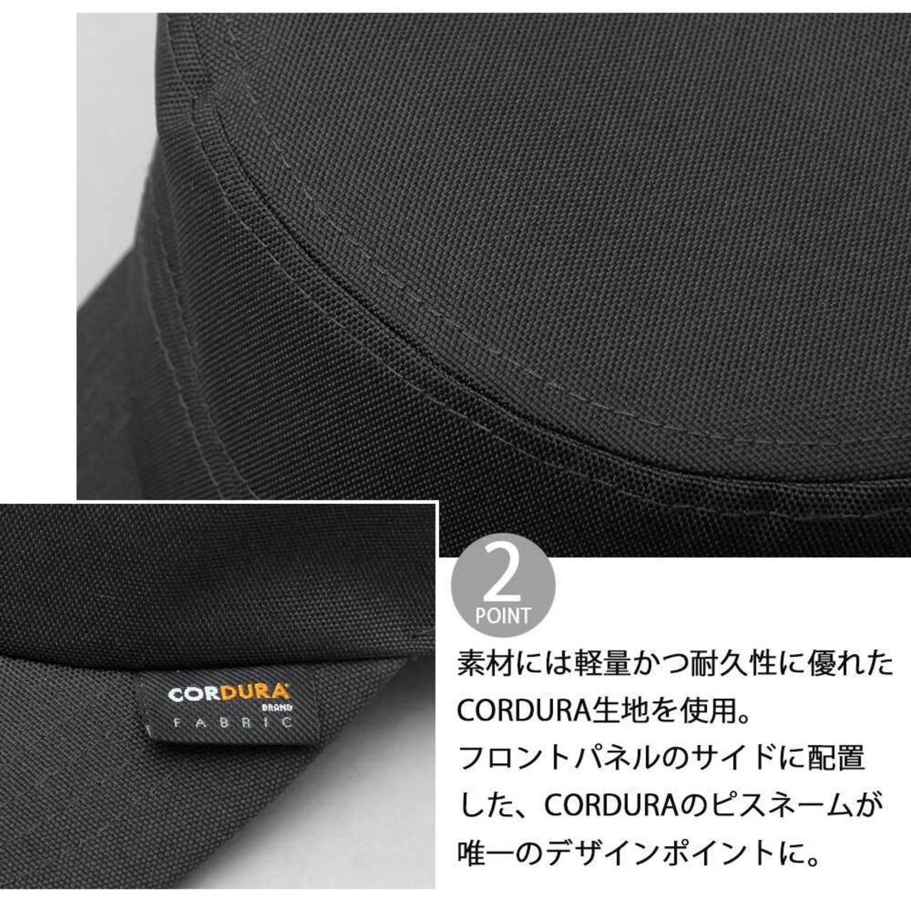 素材には軽量かつ耐久性に優れたCORDURA生地を使用。フロントパネルのサイドに配置した、CORDURAのピスネームが唯一のデザインポイントに。