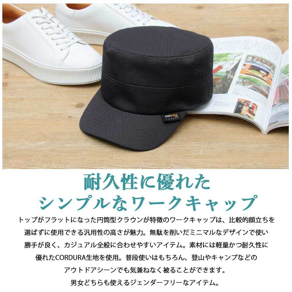 トップがフラットになった円筒型クラウンが特徴のワークキャップは、比較的顔立ちを選ばずに使用できる汎用性の高さが魅力。無駄を削いだミニマルなデザインで使い勝手が良く、カジュアル全般に合わせやすいアイテム。素材には軽量かつ耐久性に優れたCORDURA生地を使用。普段使いはもちろん、登山やキャンプなどのアウトドアシーンでも気兼ねなく被ることができます。男女どちらも使えるジェンダーフリーなアイテム。