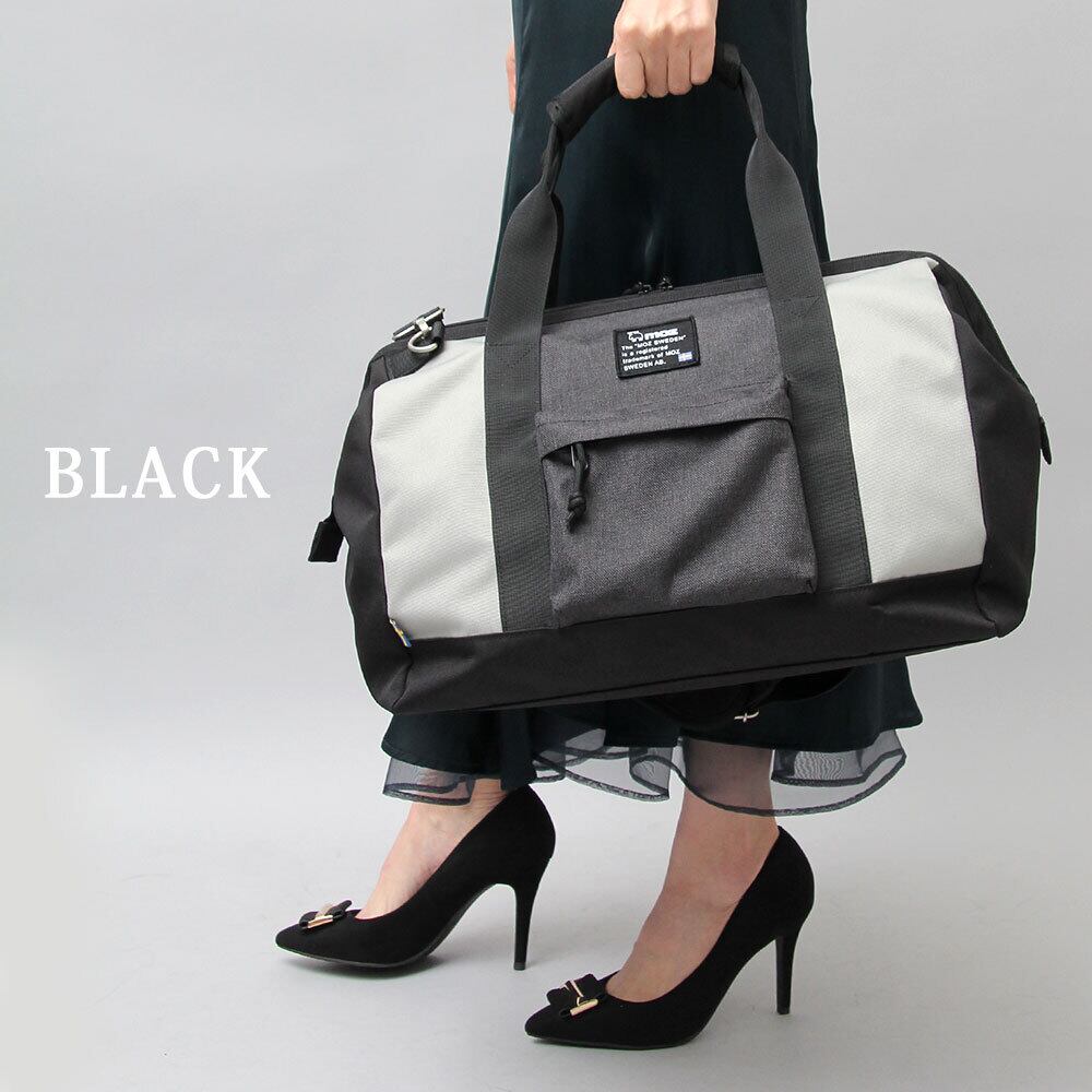 TTO-021 BK【 moz / モズ 】 ポリエステル ボストンバッグ / 大容量 / 旅行バッグ / トラベルバッグ / ショルダーベルト付き / がま口