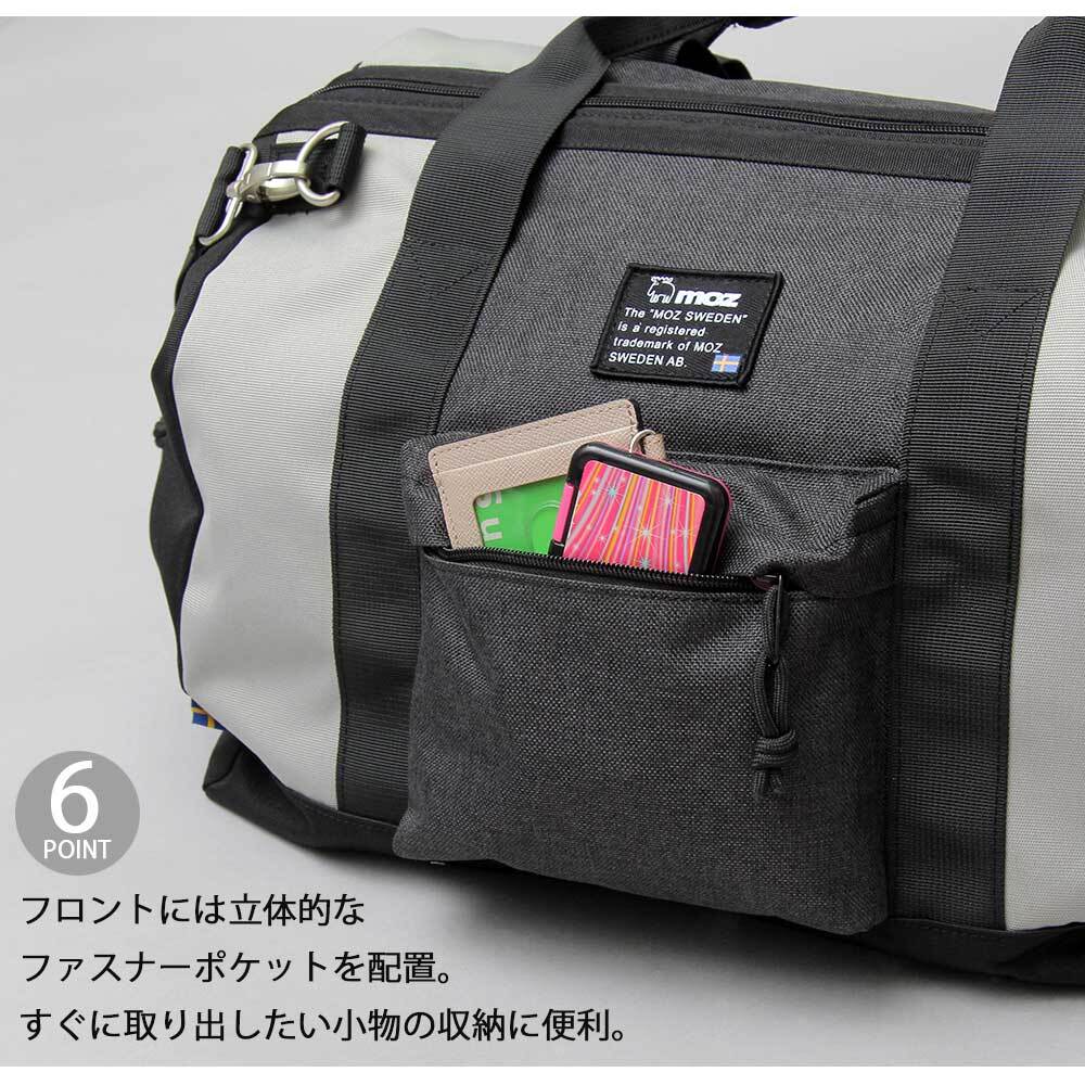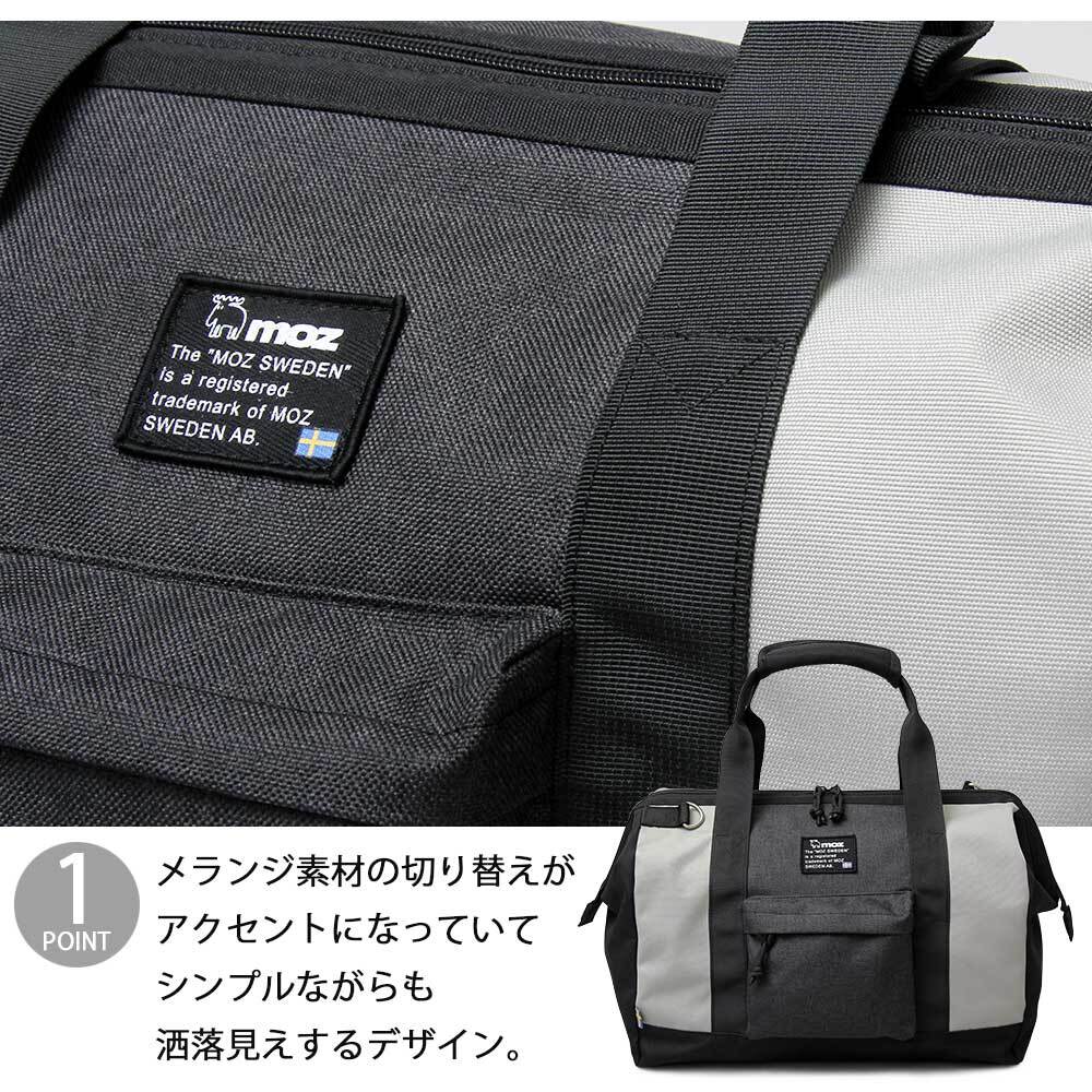 スウェーデン生まれの北欧ブランドmoz(モズ)のボストンバッグ。メランジ素材の切り替えがアクセントになったシンプルながらも洒落見えするデザイン。間口はワイヤー入りでがま口のようにパックリと開き、荷物の出し入れが楽々。収納スペースはマチ幅がしっかりあるため、1~2泊程度の荷物が収納可能。ファスナーポケット、ノートPC対応のクッションポケットなど内側も様々なシーンで使いやすい設計に。取り外し可能なショルダーストラップが付属しており、肩にかけて持ち運びができる2WAY仕様。デザインだけでなく機能面も充実したボストンバッグ。