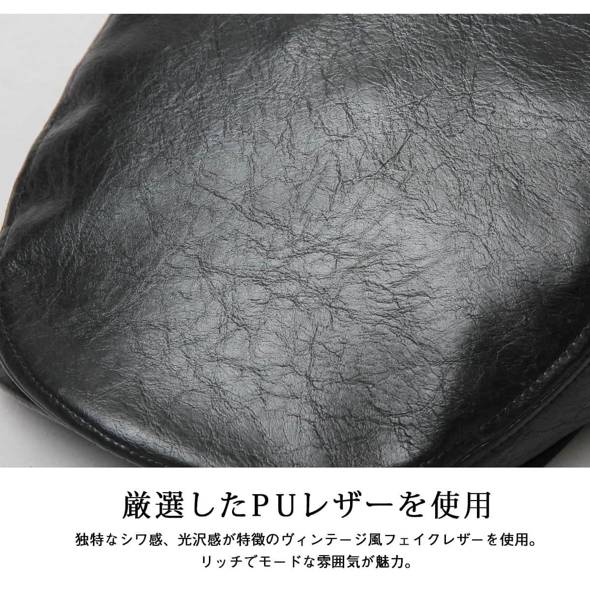 独特なシワ感、光沢感が特徴のヴィンテージ風フェイクレザーを使用。リッチでモードな雰囲気が魅力。