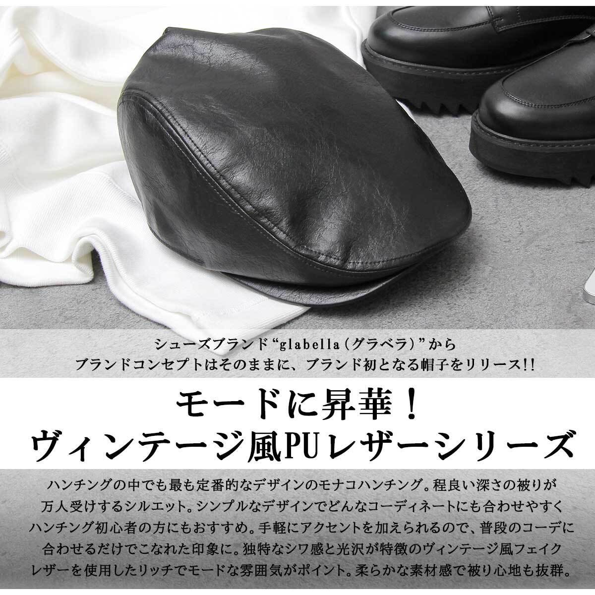シンプルなデザインでどんなコーディネートにも合わせやすく、ハンチング初心者の方にもおすすめ。手軽にアクセントを加えられるので、普段のコーデに合わせるだけでこなれた印象に。独特なシワ感と光沢が特徴のヴィンテージ風フェイクレザーを使用したリッチでモードな雰囲気がポイント。柔らかな素材感で被り心地も抜群。