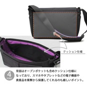 背面はオープンポケットも含めクッション仕様になっており、スマホやタブレットなどの電子機器や貴重品を衝撃から保護してくれるのも嬉しいポイント。