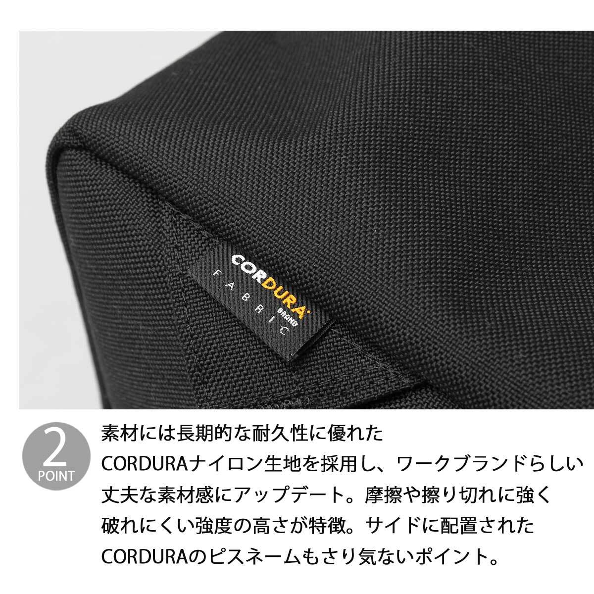 素材には長期的な耐久性に優れたCORDURAナイロン生地を採用し、ワークブランドらしい丈夫な素材感にアップデート。摩擦や擦り切れに強く、破れにくい強度の高さが特徴。サイドに配置されたCORDURAのピスネームもさり気ないポイント。
