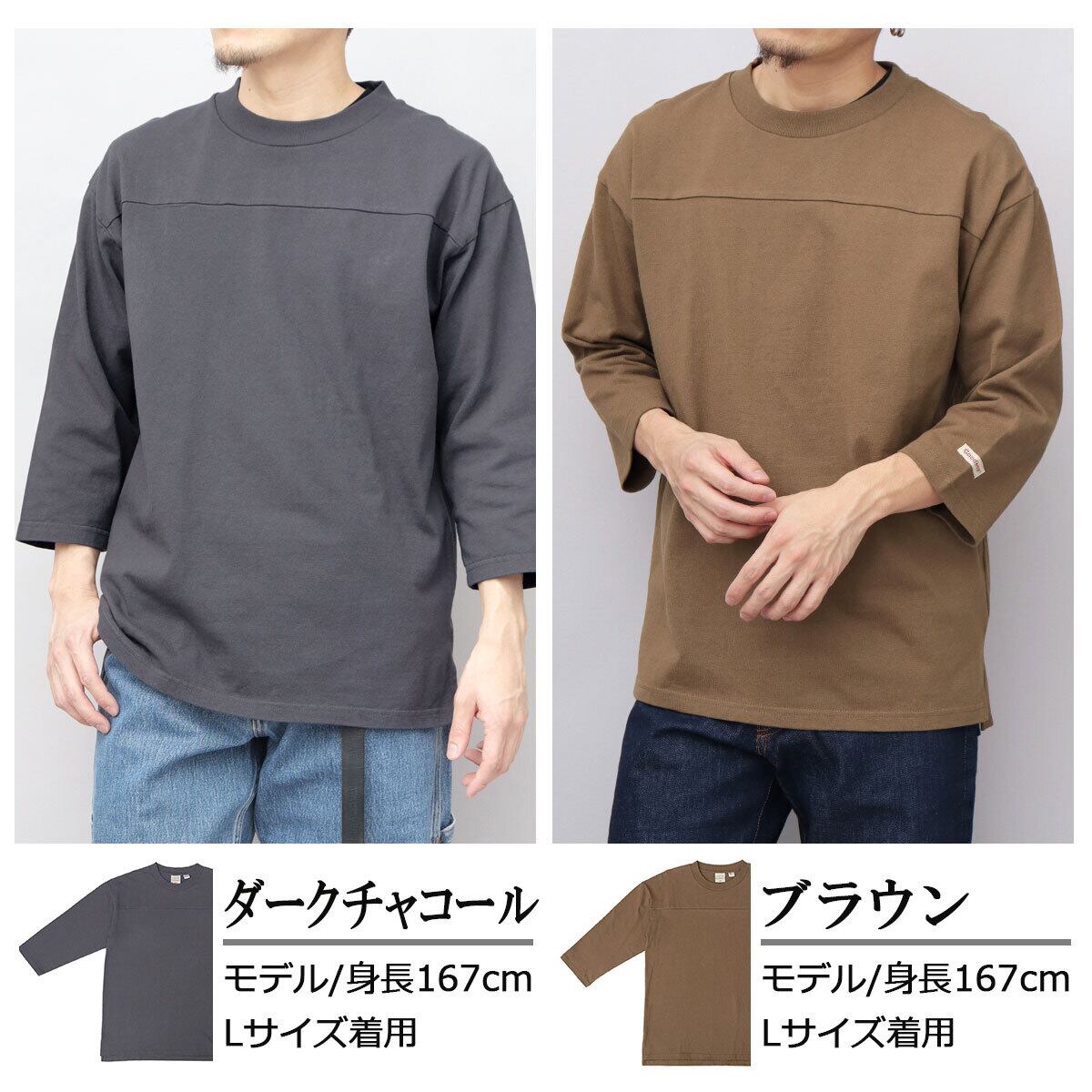 USAコットンを使用したタフでしっかりとした質感の生地で、長く愛用できそうです。洗濯する度に風合いが良くなるしっかりした生地感で、ゴワゴワし過ぎない着心地が良いです。シンプルな7分丈のTシャツは大人カジュアルスタイルにもピッタリです。すっきりジャストで着る場合は、Mサイズ、ゆったりストリートスタイルなどに合わせるならLサイズやXLサイズがオススメです。個人的には、XLサイズをざっくりゆるく切るのが好み。(167cm)