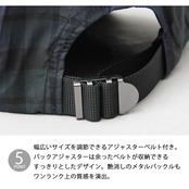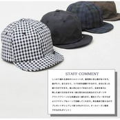 ベースボールキャップのツバを短くしたデザインが特徴のアンパイアキャップ。やや深めの被りにフラットで短いツバを合わせた特徴的なシルエットがポイント。ツバは柔らかく、ソフトワイヤー入りなので、ツバを反らせたり、曲げたりと表情を変えて楽しめる。また、短いツバは邪魔にならないので後ろ被りにもおすすめ。ヨコ糸に長期的な耐久性を誇るCORDURA糸を使用した、日本製のナイロン混のコットン生地を使用。軽くて丈夫な素材使いで、アウトドアなどタフなシーンでも気兼ねなく使えます。カラーによってチェックのデザインが違うので、色違いでも欲しいアイテム。