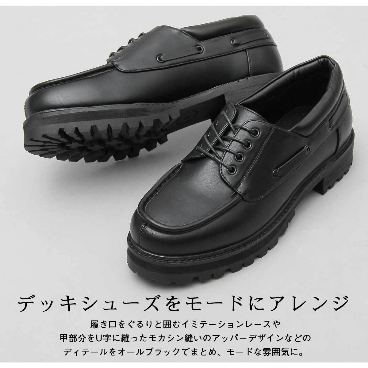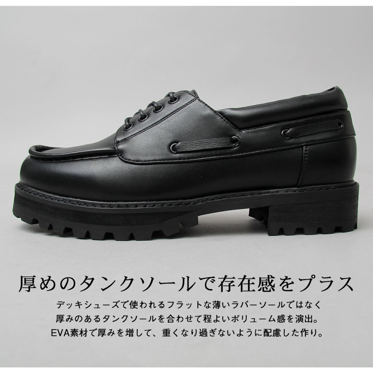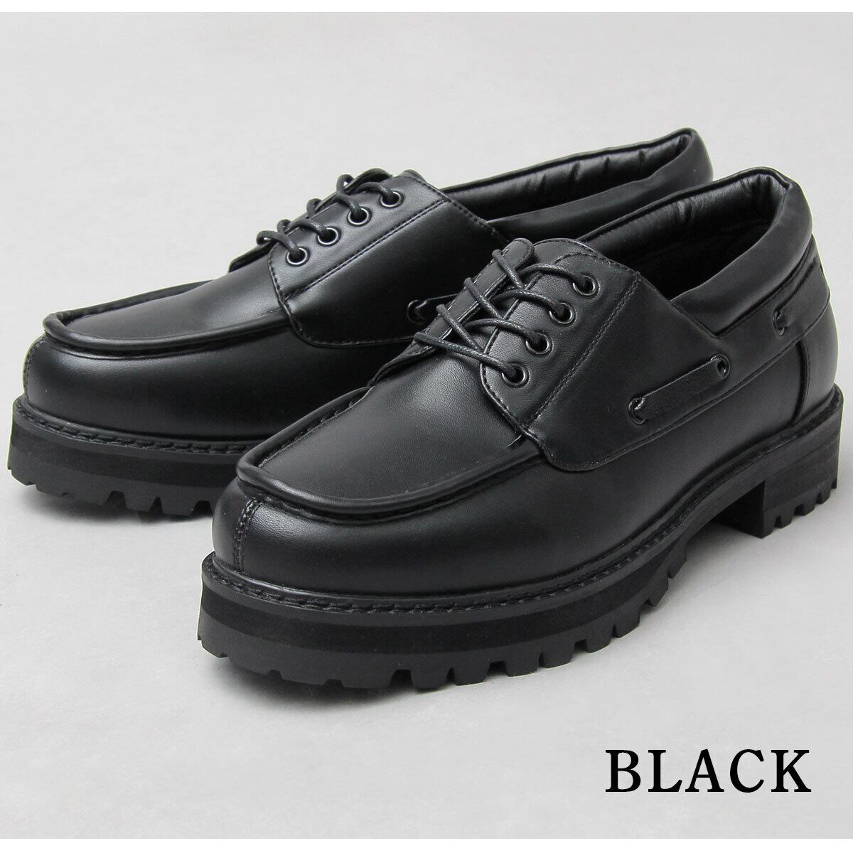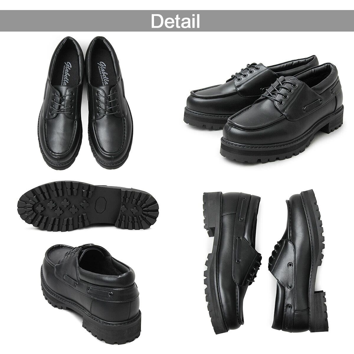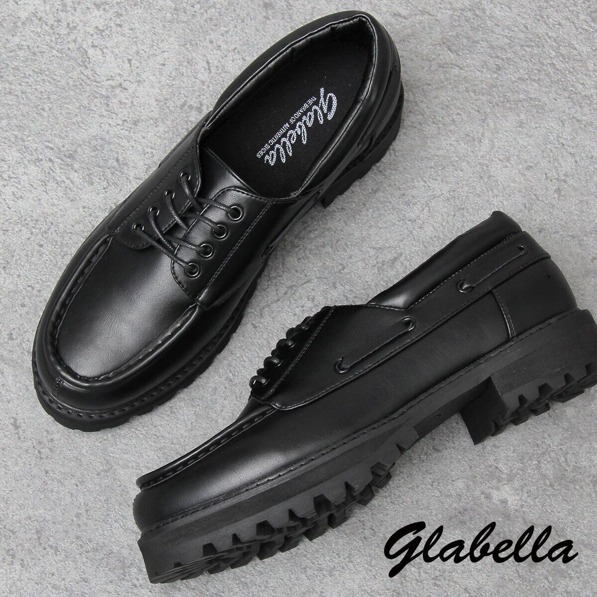 GLBT-238 BK glabella / グラベラ / フェイクレザー 厚底タンクソール デッキシューズ / ドレスシューズ / ワークシューズ