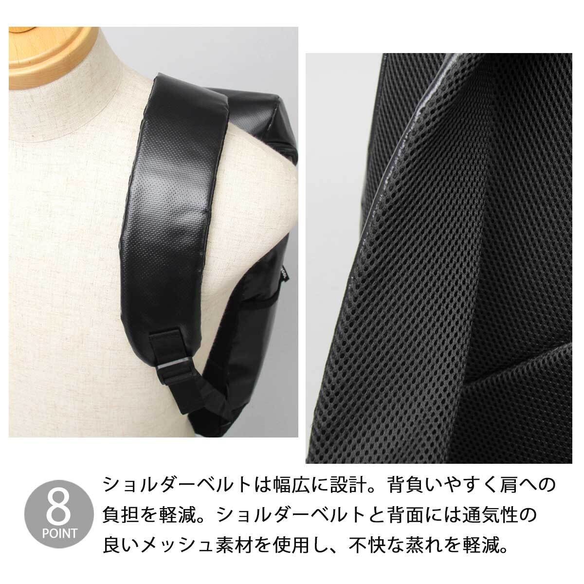 ショルダーベルトは幅広に設計。背負いやすく肩への負担を軽減。ショルダーベルトと背面には通気性の良いメッシュ素材を使用し、不快な蒸れを軽減。