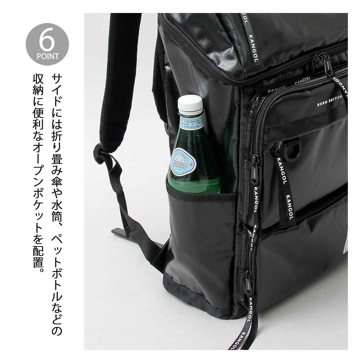 言わずと知れたイギリスの帽子ブランド“KANGOL(カンゴール)”のボックス型リュック。高い耐久性と撥水機能を併せ持ったターポリン生地を採用した、雨風に強く、丈夫で長く使える作りがポイント。B4サイズも収まる大容量の収納スペースは広いマチ幅を取り、教科書や仕事の書類など、かさばる荷物がしっかり収納可能。シンプルなデザインでデイリーに使いやすく、ボトル類の収納に便利なサイドポケットなどタウンユースに必要な機能もしっかり完備。普段使いはもちろん、通勤・通学やスポーツ、旅行やアウトドアなど幅広いシーンで活躍するアイテム。