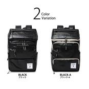 ターポリン生地の光沢感が印象的なボックス型のバックパック。シンプルなデザインと大容量サイズで幅広いシーンに使用できる使い勝手の良さがポイント。