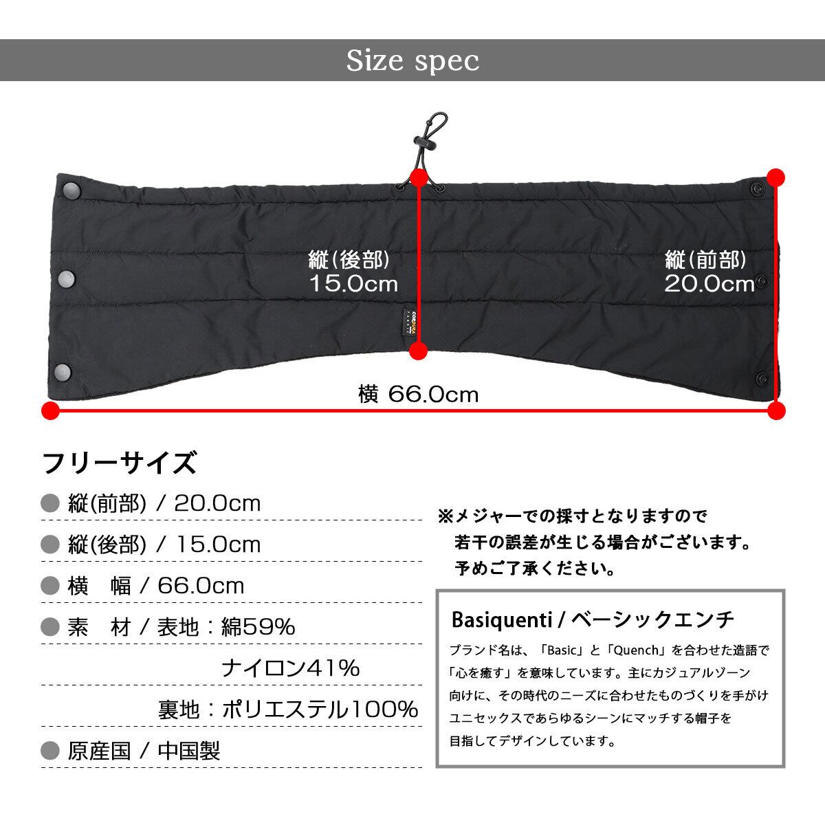 首元をすっぽりと包み込み、冷たい風や寒さからしっかりガードしてくれるスナップタイプのネックウォーマー。フロント部分を長めに設定したパターン設計は、肩から首元にかけてしっかりとフィット。裏地には、肌触りのよいフリース素材を使用し、心地よい付け心地と暖かさをキープ。首部分のゴム製のドローコードによるフィット感の調節も可能で、風の侵入を防げる、防寒性抜群の作り。首元でヘタっとならないように、高さとボリューム感を出した作りもポイント。鼻まで隠れる高さがあるので、フェイスマスクとしても使える2WAY仕様。表地には、軽量かつ耐久力に優れた、コットン混のCORDURAナイロン生地を採用。高耐久でありながら、柔らかくナチュラルな風合いが魅力。体積がマフラーに比べて小さいので、バッグに入れて携帯するのにも便利です。正面合わせのスナップボタン式で簡単に着脱できるので、通勤・通学にも便利。秋冬シーズンのデイリーユースはもちろん、アウトドアやスポーツなどアクティブなシーンにもおすすめ。