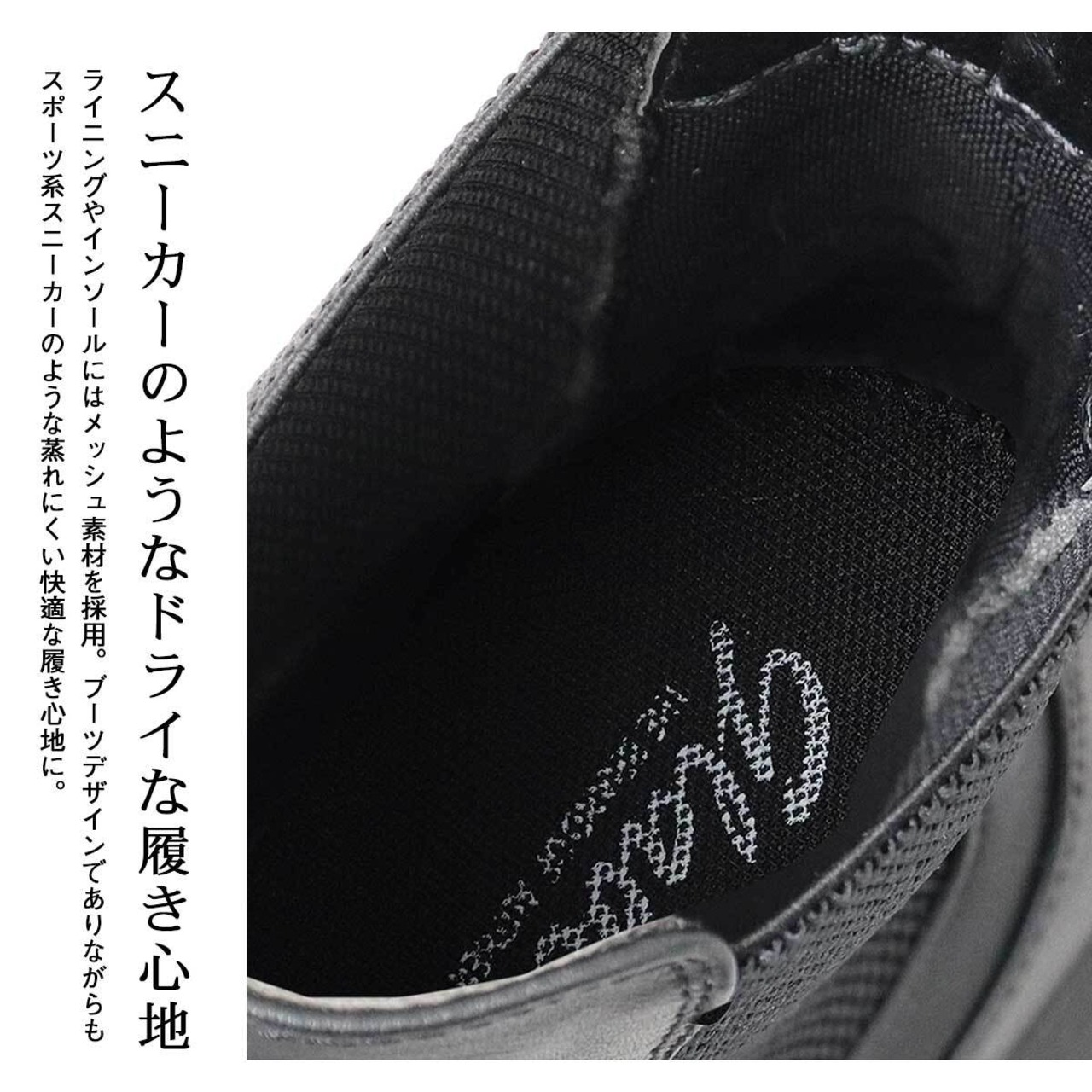 ライニングやインソールにはメッシュ素材を採用。ブーツデザインでありながらも、スポーツ系スニーカーのような蒸れにくい快適な履き心地に。