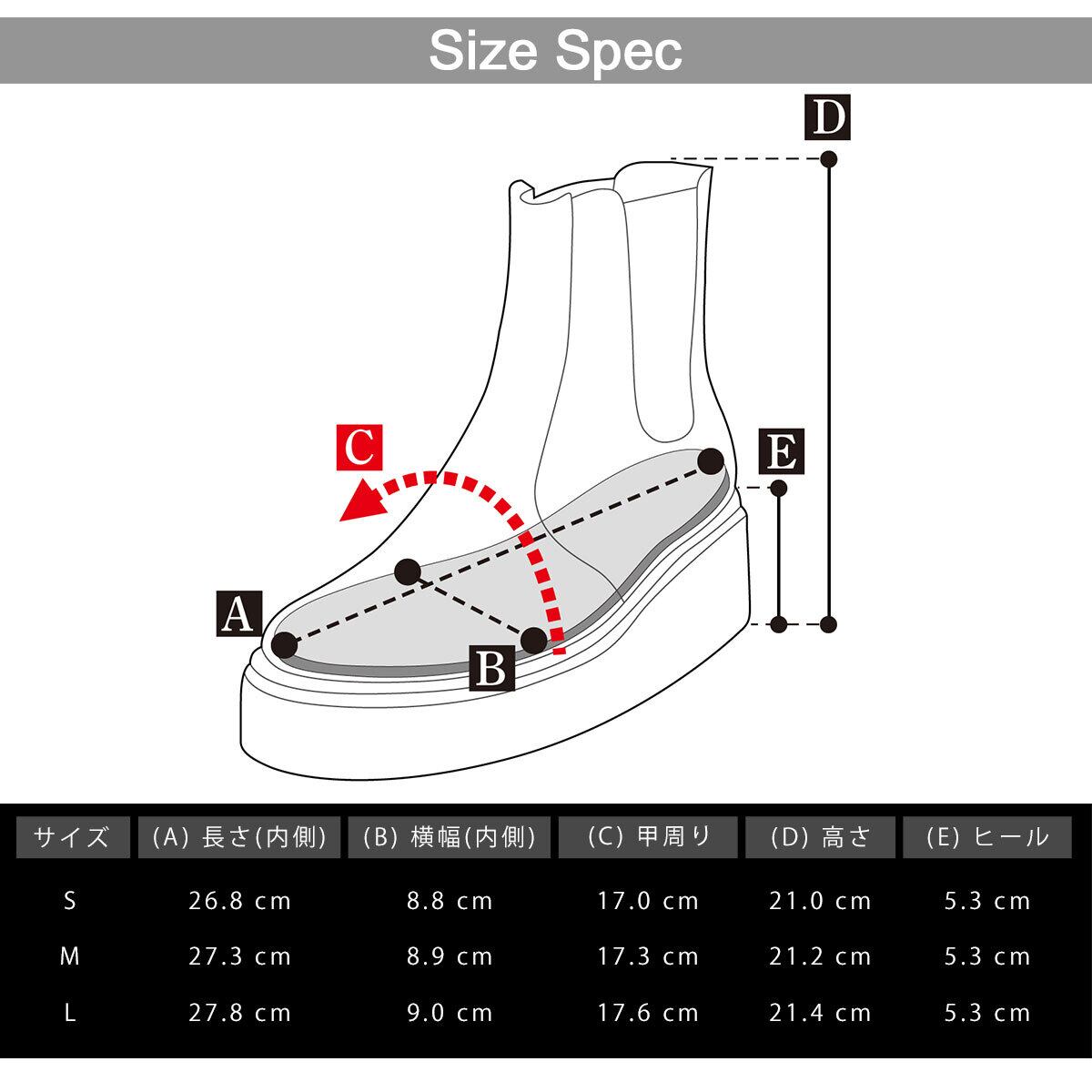 [S]長さ:26.8cm/ 幅:8.8cm/ 甲周り:17.0cm/ 高さ:21.0cm/ ヒール:5.3cm/