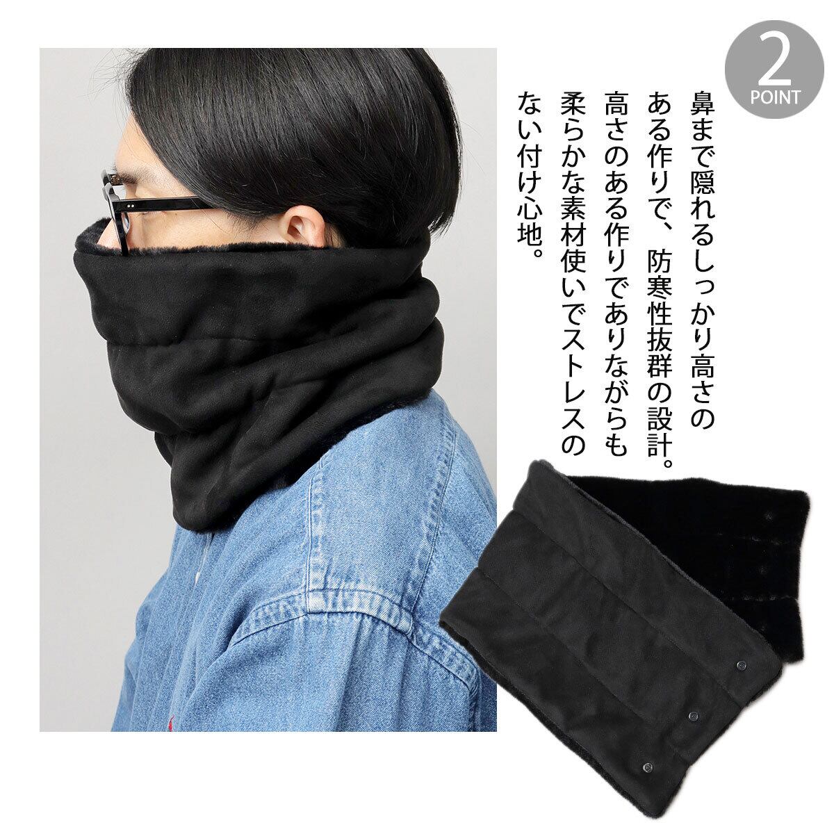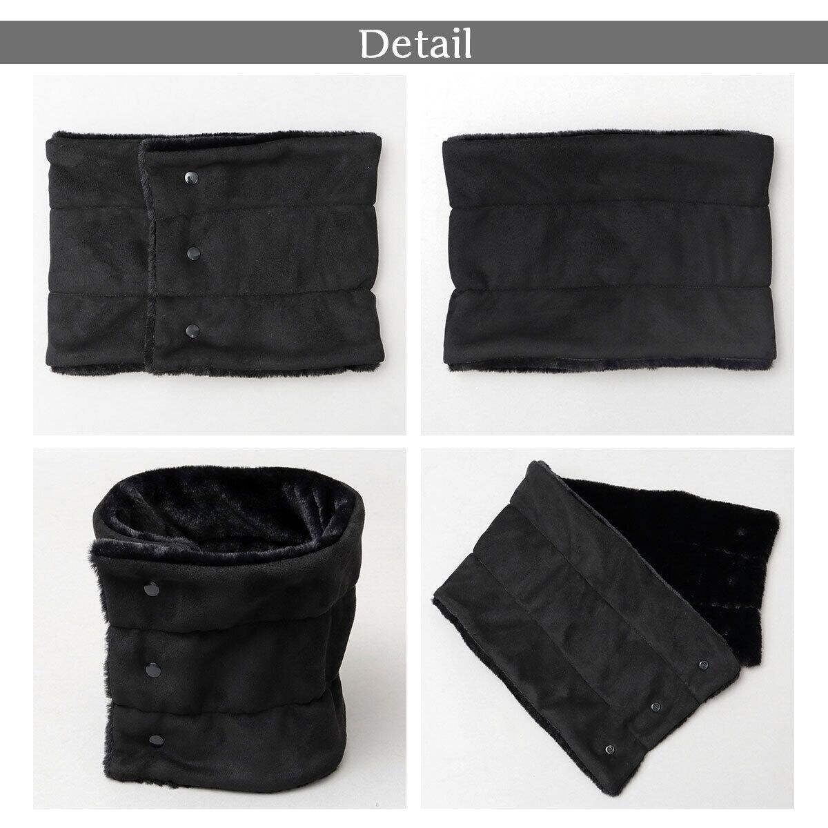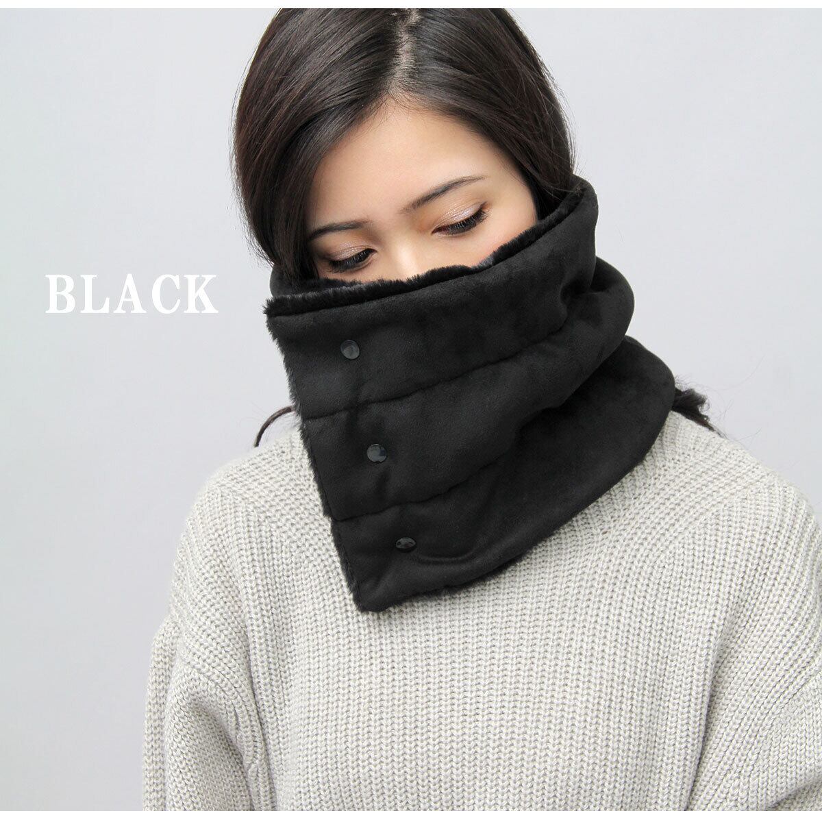 首元をすっぽりと包み込み、冷たい風や寒さからしっかりガードしてくれるスナップタイプのネックウォーマー。