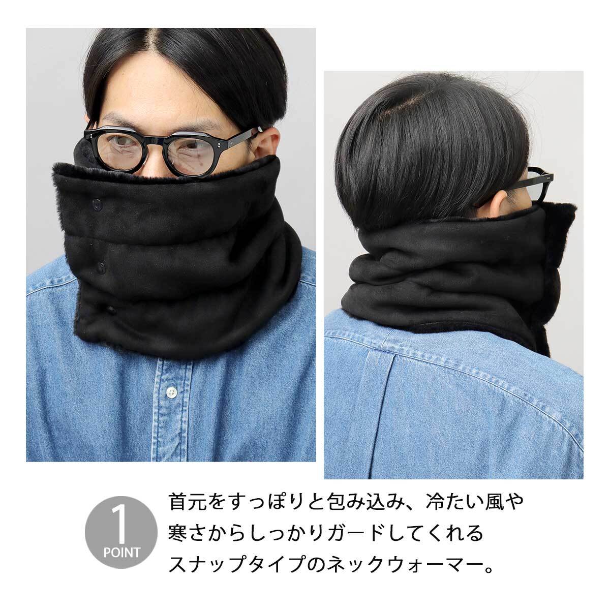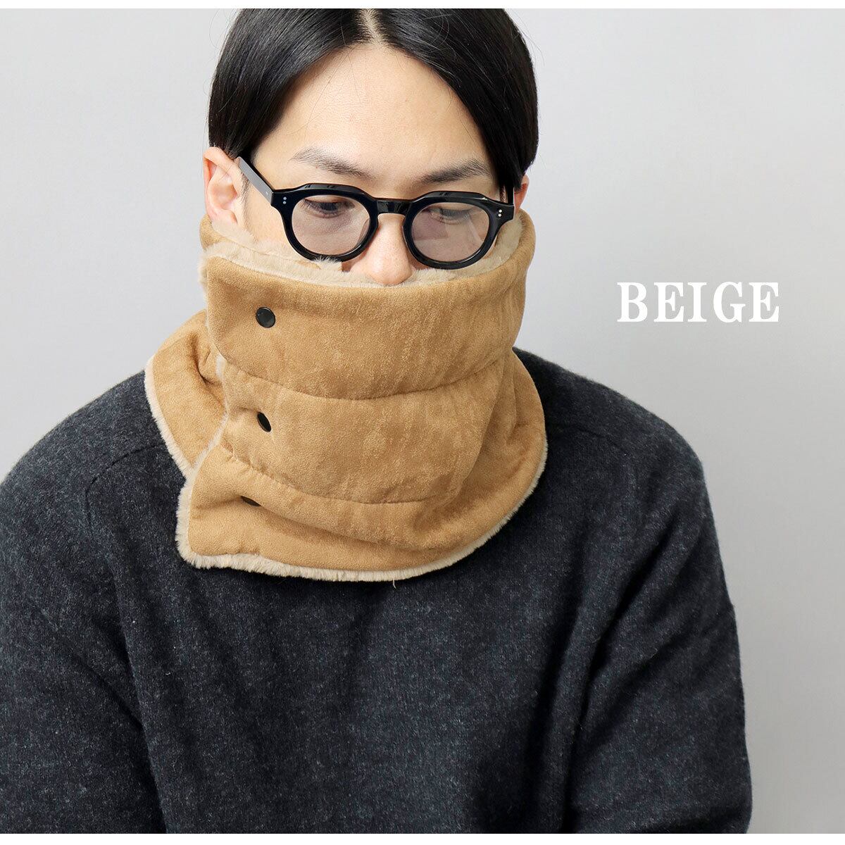 秋冬らしい温もりのある表情が魅力のフェイクムートンを使用したスナップタイプのネックウォーマー。しっかり高さのある作りで、首元をすっぽりと包み込み、冷たい風や寒さからしっかりガード。表地は、しなやかなスエード調のピーチスキン素材、裏地には、ふんわり滑らかな肌触りのファー素材を使用し、心地よい着け心地と暖かさをキープ。柔らかな素材感で、高さのある作りでありながらもストレスのない付け心地に。正面合わせのスナップボタン仕様なので簡単に着脱できるのも嬉しいポイント。普段使いやタウンユースにはもちろん、通勤や通学にもおすすめ。