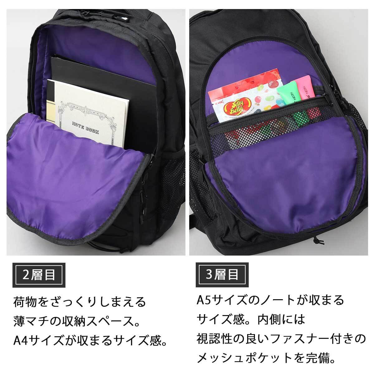 バッグの裏地にはパープルの生地を使用しアクセントに。ブラックより視認性もアップ。