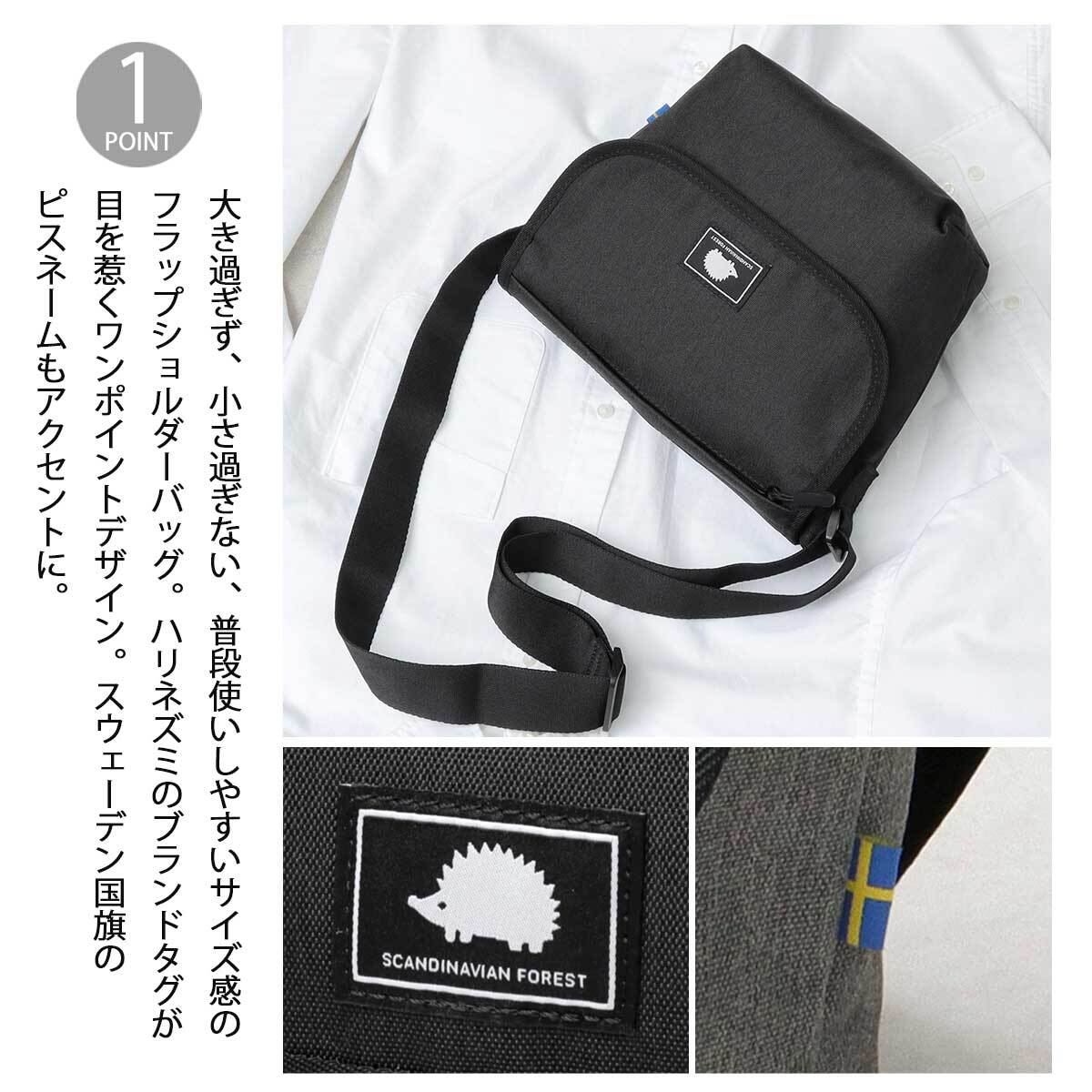 LFC-028 スカンジナビアンフォレスト SCANDINAVIANFOREST ショルダーバッグ レディース 北欧 フラップショルダー 黒 ハリネズミ 斜め掛け