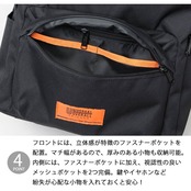 フロントには、立体感が特徴のファスナーポケットを配置。マチ幅があるので、厚みのある小物も収納可能。内側には、ファスナーポケットに加え、視認性の良いメッシュポケットを2つ完備。鍵やイヤホンなど、紛失が心配な小物を入れておくと安心!