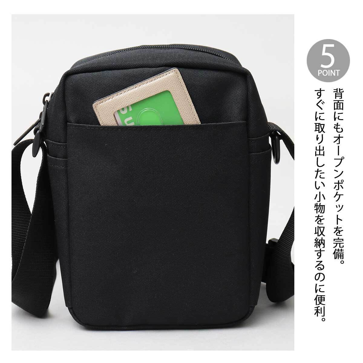 一般的な縦型のミニショルダーに比べ、縦、横、マチ幅全て少し大きめにした、やや大きめサイズがポイント。