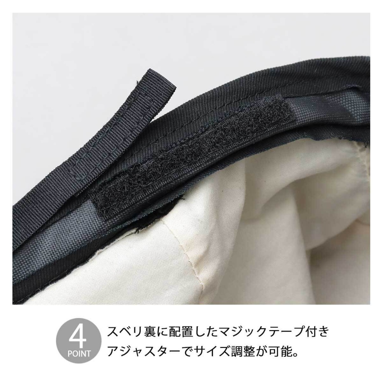スベリ裏に配置したマジックテープ付きアジャスターでサイズ調整が可能。