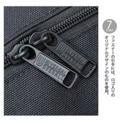 ファスナーの引手には、ロゴ入りのオリジナルデザインのものを使用。