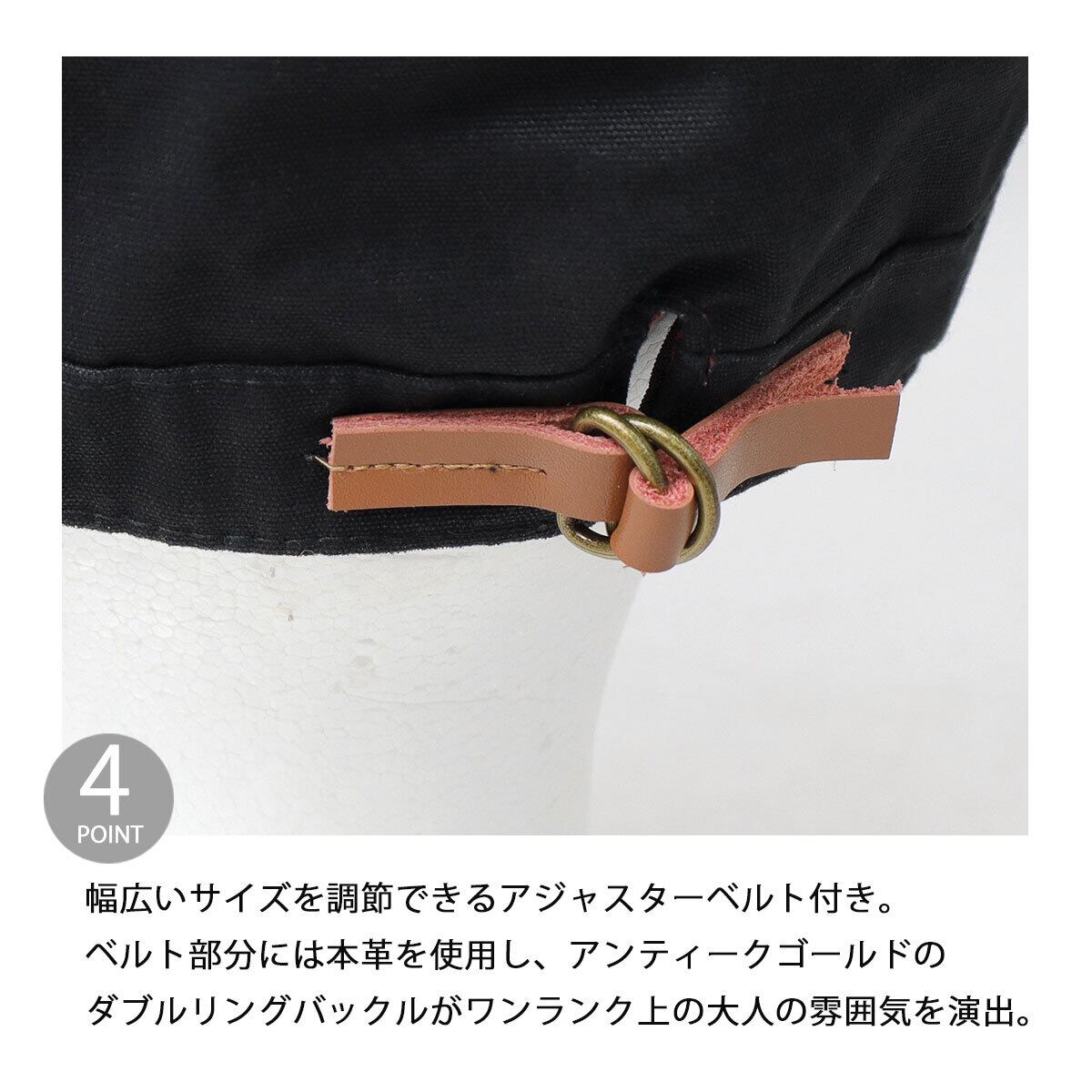 幅広いサイズを調節できるアジャスターベルト付き。ベルト部分には本革を使用し、アンティークゴールドのダブルリングバックルがワンランク上の大人の雰囲気を演出。