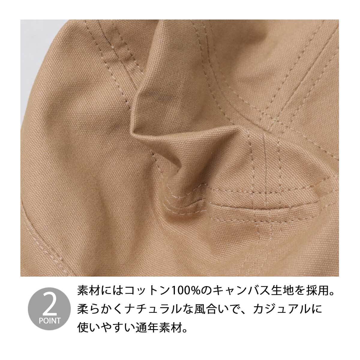 素材には、コットン100%のキャンバス生地を採用。柔らかくナチュラルな風合いで、カジュアルに使いやすい通年素材。