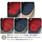 豊富なカラーバリエーションを用意。帽子の裏地は、表地と異なる配色にすることでさり気ないアクセントに。カラーによって配色が異なるのもポイント!