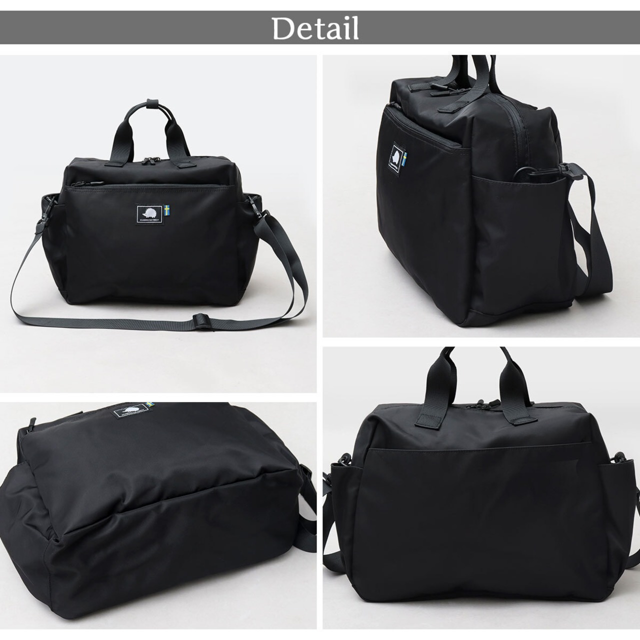 やや小ぶりなサイズ感のボストンバッグ。撥水加工を施したナイロン素材を使用しているので、水をはじきやすく、雨の日でも気軽に使えてお手入れもラクチン。
